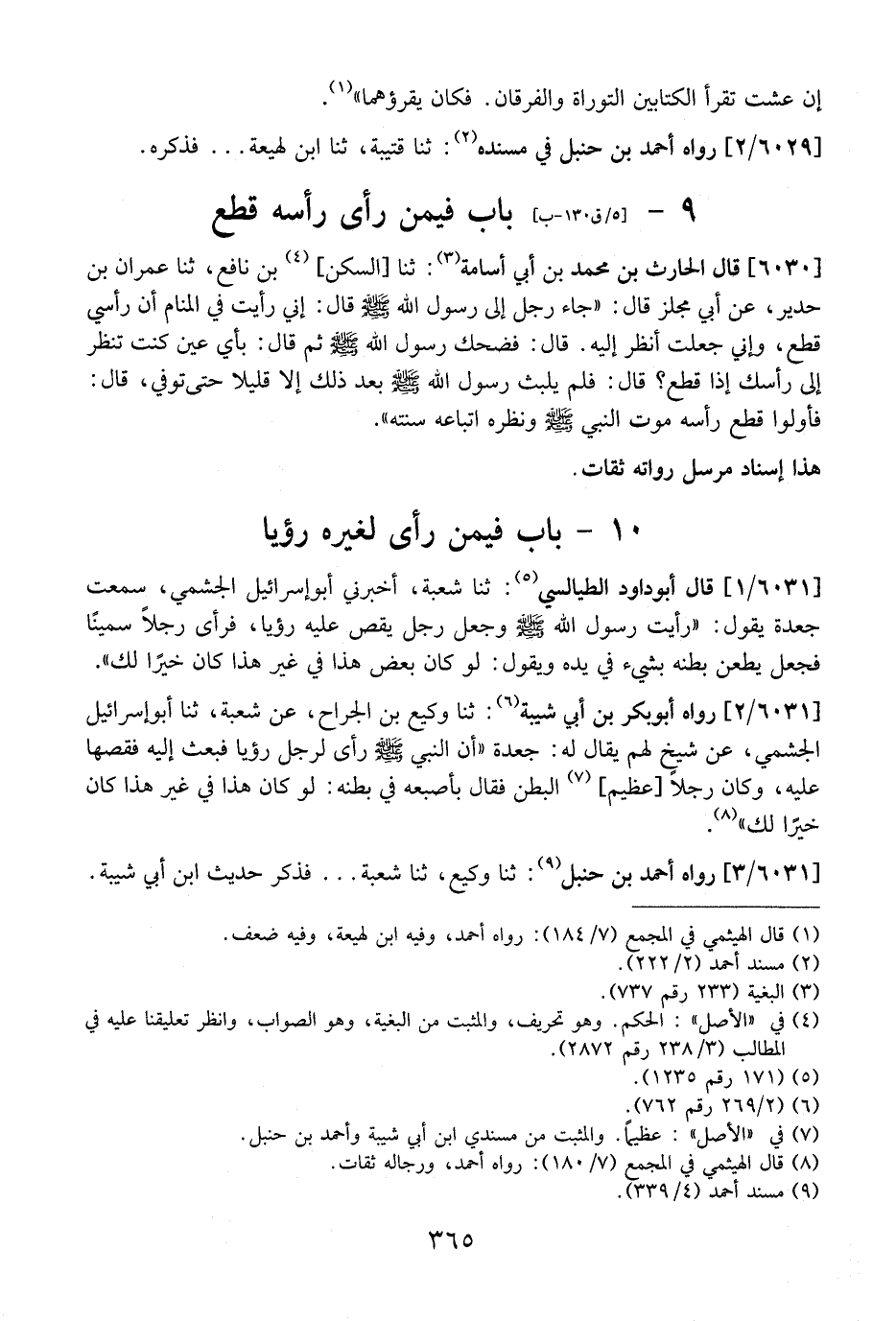 9- بَابٌ فِيمَنْ رَأَى رَأْسَهُ قُطِعَ