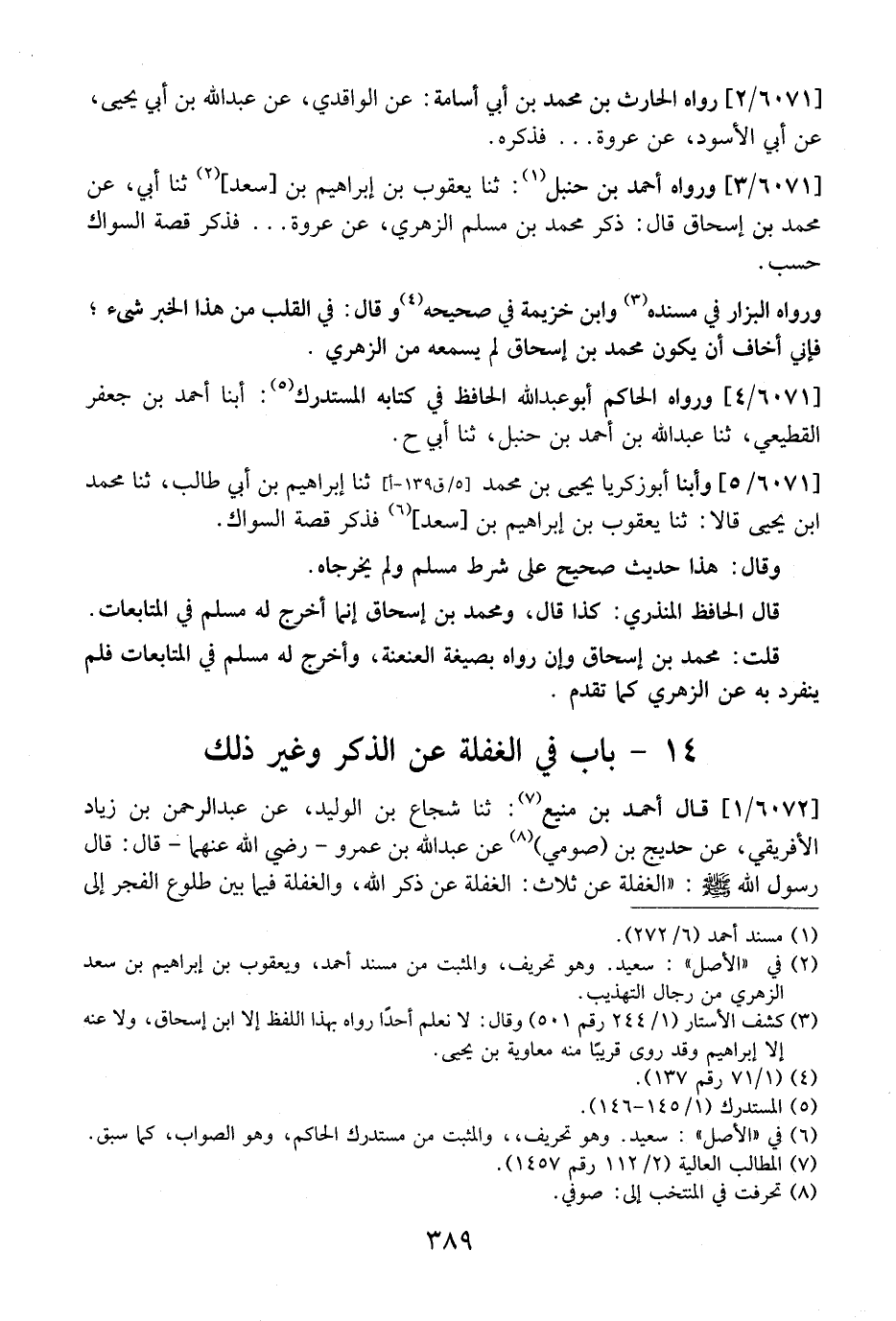 6071 / 3 - وَرَوَاهُ أَحْمَدُ بْنُ حَنْبَلٍ: ثَنَا يَعْقوُبُ بْنُ إِبْرَاهِيمَ بْنِ سَعْدٍ، ثَنَا أَبِي، عَنْ مُحَمَّدِ بْنِ إِسْحَاقَ قَالَ: ذكر محمد بن مسلم الزهري، عن عروة ... فذكر قصة السواك حسب.