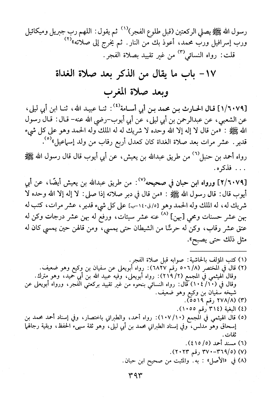 17- بَابُ مَا يُقَالُ مِنَ الذِّكْرِ بَعْدَ صلاة الغداة وبعد صلاة المغرب