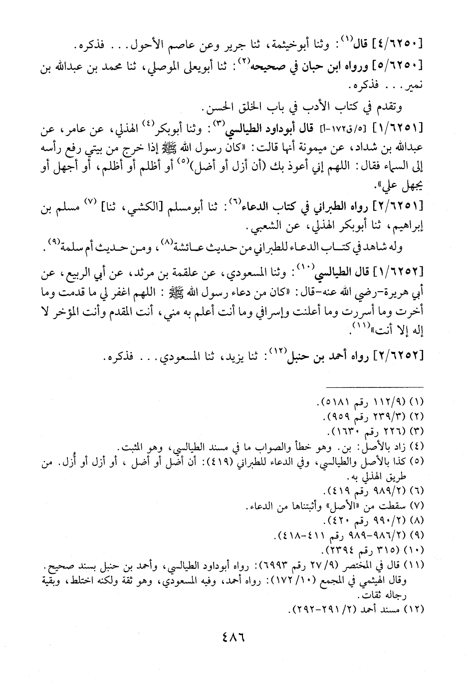 6250 / 5 - وَرَوَاهُ ابْنُ حِبَّانَ فِي صَحِيحِهِ: ثَنَا أَبُو يَعْلَى الْمَوْصِلِيُّ، ثَنَا مُحَمَّدُ بْنُ عَبْدِ اللَّهِ بْنِ نُمَيْرٍ ... فَذَكَرَهُ.