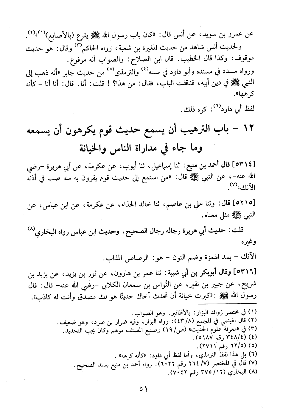 12- بَابُ التَّرْهِيبِ أَنْ يَسْمَعَ حَدِيثَ قَوْمٍ يَكْرَهُونَ أَنْ يَسْمَعَهُ وَمَا جَاءَ فِي مُدَارَاةِ النَّاسِ وَالْخِيَانَةِ.