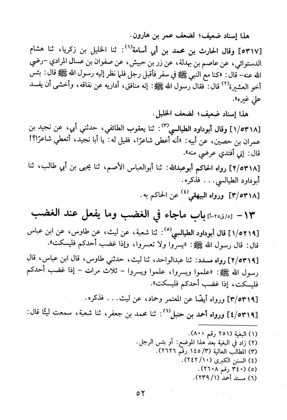 5317 - وَقَالَ الْحَارِثُ بْنُ مُحَمَّدِ بْنِ أَبِي أُسَامَةَ: ثَنَا الْخَلِيلُ بْنُ زَكَرِيَّا، ثَنَا هِشَامٌ الدُّسْتُوَائِيُّ، عَنْ عَاصِمِ بْنِ بَهْدَلَةَ، عَنْ زِرِّ بْنِ حُبَيْشٍ، عَنْ صَفْوَانَ بْنِ عَسَّالٍ الْمَرَادِيِّ- رَضِيَ اللَّهُ عَنْهُ- قَالَ: "كُنَّا مَعَ النَّبِيِّ - صَلَّى اللَّهُ عَلَيْهِ وَسَلَّمَ - فِي سَفَرٍ فَأَقْبَلَ رَجُلٌ فَلَمَّا نَظَرَ إِلَيْهِ رَسُولُ اللَّهِ - صَلَّى اللَّهُ عَلَيْهِ وَسَلَّمَ - قَالَ: بِئْسَ أَخُو الْعَشِيرَةِ قَالَ: فَقَالَ رَسُولُ اللَّهِ - صَلَّى اللَّهُ عَلَيْهِ وسلم -: إِنَّهُ مُنَافِقٌ، أُدَارِيهِ عَنْ نِفَاقِهِ، وَأَخْشَى أَنْ يُفْسِدَ عَلَى غَيْرِهِ".