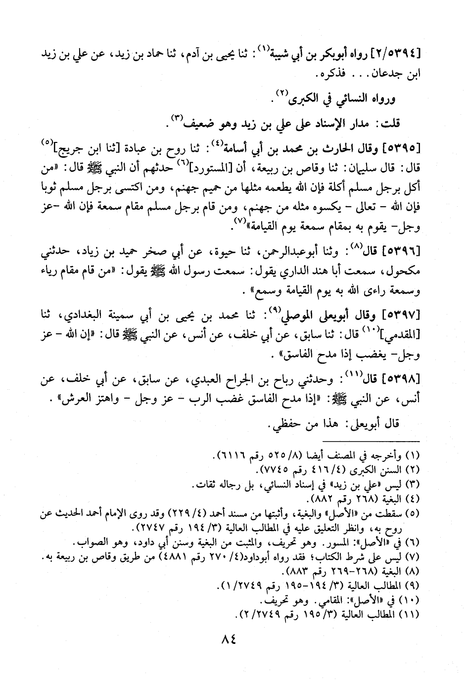 5394 / 2 - رَوَاهُ أَبُو بَكْرِ بْنُ أَبِي شَيْبَةَ: ثنا يَحْيَى بْنُ آدَمَ، ثَنَا حَمَّادُ بْنُ زْيَدٍ، عَنْ عَلِيِّ بْنِ زَيْدِ بْنِ جُدْعَانَ ... فَذَكَرَهُ.