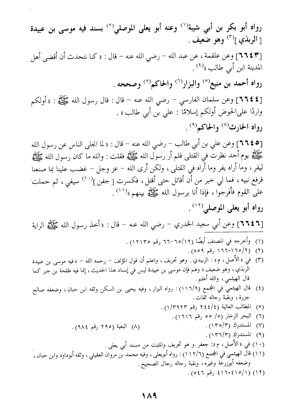 رَوَاهُ أَبُو بَكْرِ بْنُ أَبِي شَيْبَةَ وَعَنْهُ أَبُو يَعْلَى الْمَوْصِلِيُّ بِسَنَدٍ فِيهِ مُوسَى بْنُ عُبَيْدَةَ الرَّبَذِيُّ وَهُوَ ضَعِيفٌ.