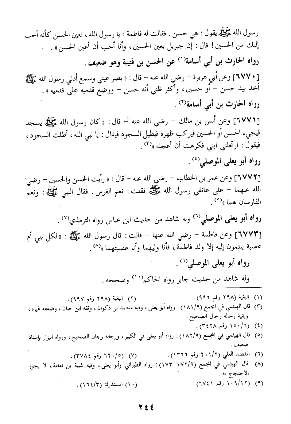 رواه الحارت بْنُ أَبِي أُسَامَةَ.