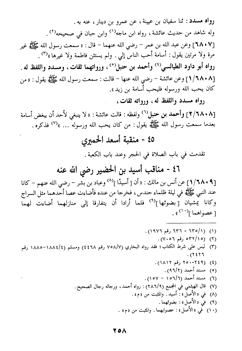6808 / 2 - وَأَحْمَدُ بْنُ حَنْبَلٍ وَلَفْظُهُ: قَالَتْ عَائِشَةُ: " لَا يَنْبَغِي لِأَحَدٍ أَنْ يُبْغِضَ أُسَامَةَ بَعْدَمَا سَمِعْتُ رَسُولَ اللَّهِ - صَلَّى اللَّهُ عَلَيْهِ وَسَلَّمَ - يَقُولُ: مَنْ كَانَ يُحِبُّ اللَّهُ وَرَسُولَهُ ... " فَذَكَرَهُ.