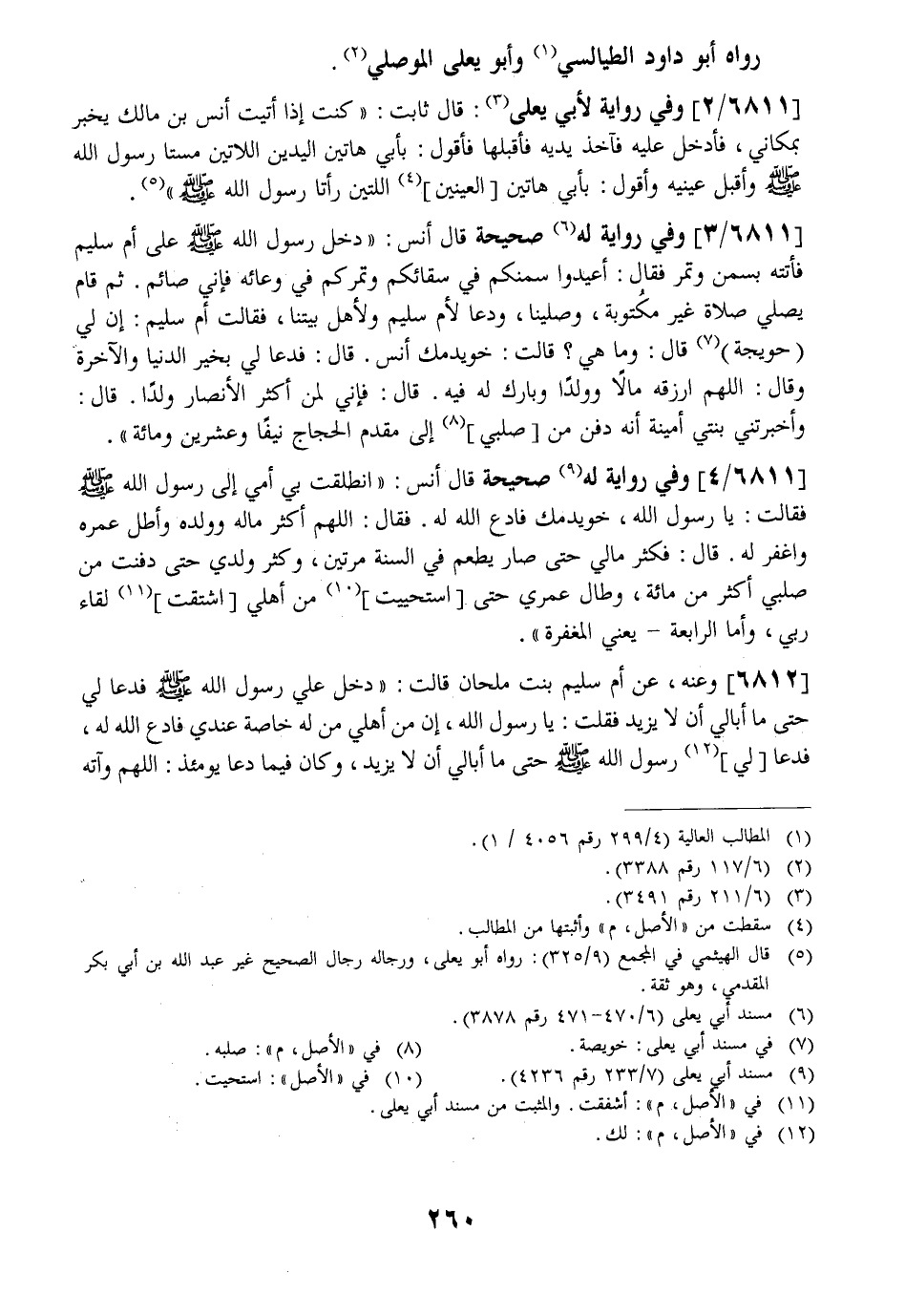 6812 - وعنه عن أُمِّ سُلَيْمِ بِنْتِ مِلْحَانَ قَالَتْ: " دَخَلَ عَلَيَّ رَسُولُ اللَّهِ - صَلَّى اللَّهُ عَلَيْهِ وَسَلَّمَ - فَدَعَا لِي حَتَّى مَا أُبَالِي أَنْ لَا يَزِيدَ فَقُلْتُ: يَا رَسُولَ اللَّهِ إِنَّ مِنْ أَهْلِي مَنْ لَهُ خَاصَّةٌ عِنْدِي فَادْعُ اللَّهَ لَهُ فَدَعَا لِي رَسُولُ اللَّهِ - صَلَّى اللَّهُ عَلَيْهِ وَسَلَّمَ - حَتَّى مَا أُبَالِي أَنْ لَا يَزِيدَ وَكَانَ فِيمَا دَعَا يَوْمَئِذٍ: اللَّهُمَّ وَآتِهِ