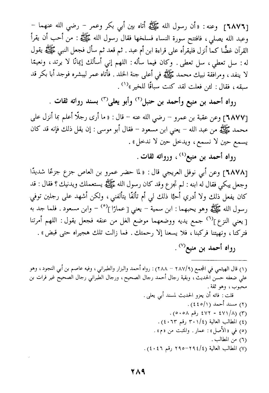 رَوَاهُ أَحْمَدُ بْنُ مَنِيعٍ وَأَحْمَدُ بْنُ حَنْبَلٍ وَأَبُو يَعْلَى بِسَنَدٍ رُوَاتُهُ ثِقَاتٌ.
