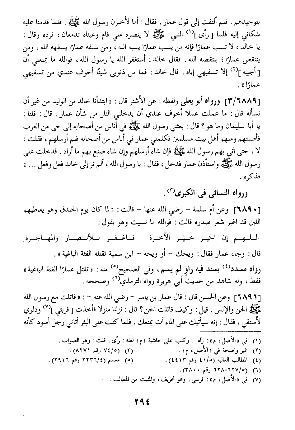 قَالَ: وَجَاءَ عَمَّارٌ فَقَالَ: وَيْحَكَ- أَوْ وَيْحَهُ- ابْنُ سُمَيَّةَ تَقْتُلُهُ الْفِئَةُ الْبَاغِيَةُ".
