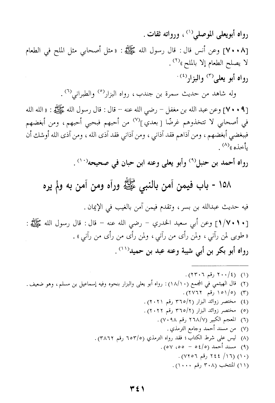 رَوَاهُ أَحْمَدُ بْنُ حَنْبَلٍ وَأَبُو يَعْلَى وَعَنْهُ ابْنُ حِبَّانَ فِي صَحِيحِهِ.