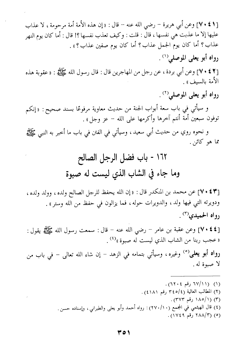 رَوَاهُ أَبُو يَعْلَى وَغَيْرُهُ، وَسَيَأْتِي بِتَمَامِهِ فِي الزُّهْدِ- إِنْ شَاءَ اللَّهُ تَعَالَى- فِي بَابِ مَنْ لَا صَبْوَةَ لَهُ.