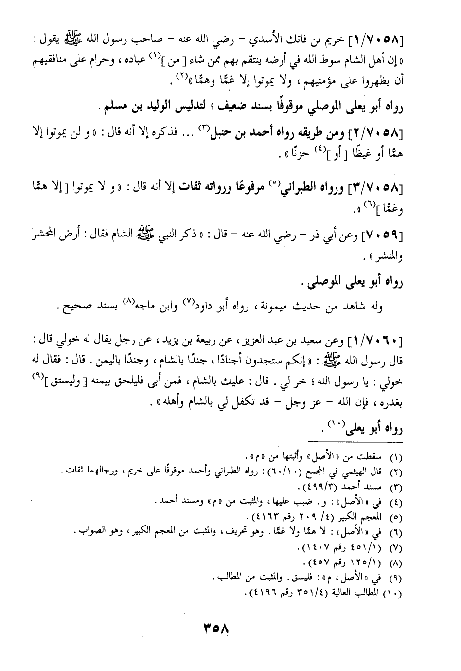 7058 / 1 - خُرَيْمِ بْنِ فَاتِكٍ الْأَسَدِيِّ- رَضِيَ اللَّهُ عَنْهُ- صَاحِبَ رَسُولِ اللَّهِ - صَلَّى اللَّهُ عَلَيْهِ وَسَلَّمَ - يَقُولُ: " إِنَّ أَهْلَ الشَّامِ سَوْطُ اللَّهِ فِي أرضه ينتقم بهم ممن شاء مِنْ، عِبَادِهِ، وَحَرَامٌ عَلَى مُنَافِقِيهِمْ أَنْ يَظْهَرُوا عَلَى مُؤْمِنِيهِمْ، وَلَا يَمُوتُوا إِلَّا غَمًّا وَهَمًّا ".