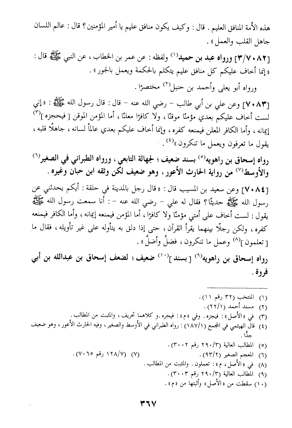 7082 / 3 - وَرَوَاهُ عَبْدُ بْنُ حُمَيدٍ وَلَفْظُهُ: عَنْ عُمَرَ بْنِ الْخَطَّابِ، عَنِ النَّبِيِّ - صَلَّى اللَّهُ عَلَيْهِ وَسَلَّمَ - قَالَ: "إِنَّمَا أَخَافُ عَلَيْكُمْ كُلَّ مُنَافِقٍ عَلِيمٍ يَتَكَلَّمُ بِالْحِكْمَةِ وَيَعْمَلُ بِالْجَوْرِ".
