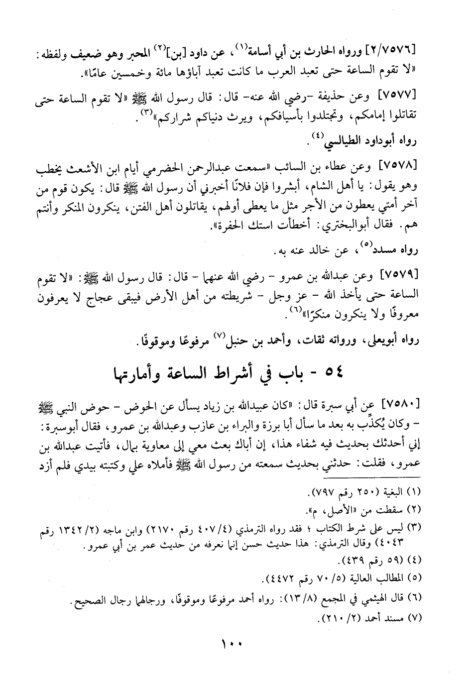 7576 / 2 - وَرَوَاهُ الْحَارِثُ بْنُ أَبِي أُسَامَةَ، عَنْ دَاوُدَ بْنِ الْمُحَبَّرِ وَهُوَ ضَعِيفٌ وَلَفْظُهُ: "لَا تَقُومَ الساعة حتى تعبد العرب ما كانت تعبد آباؤها مائة وخمسين عامًا".