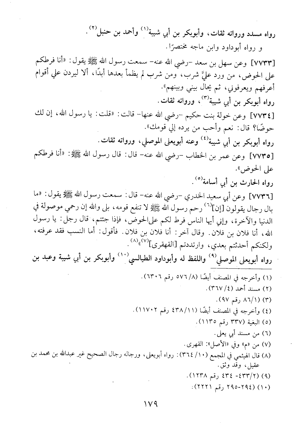 7735 - وَعَنْ عُمَرَ بْنِ الْخَطَّابِ- رَضِيَ اللَّهُ عَنْهُ- قَالَتْ: قَالَ رَسُولُ اللَّهِ - صَلَّى اللَّهُ عَلَيْهِ وَسَلَّمَ -: "أَنَا فَرَطُكُمْ عَلَى الْحَوْضِ".