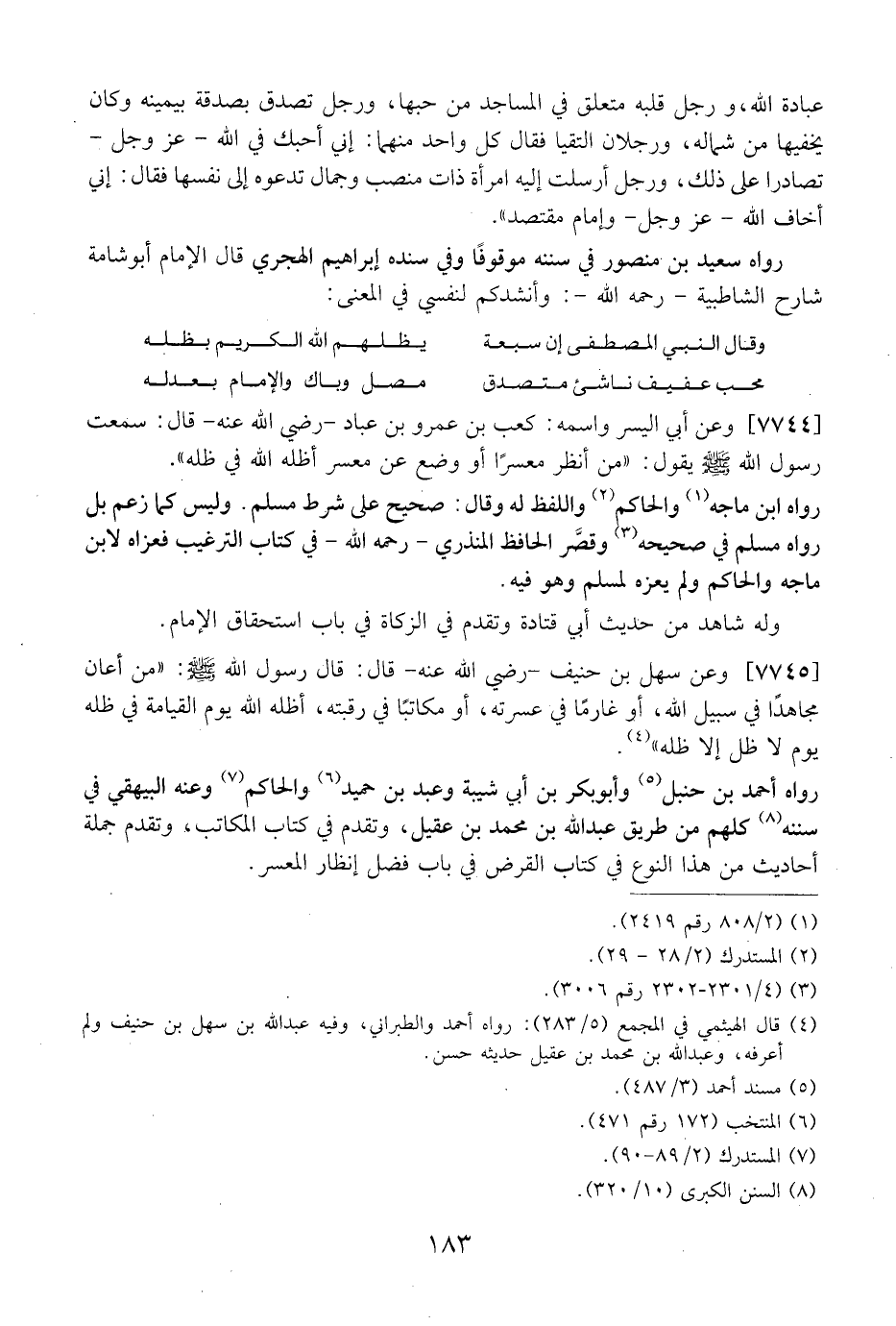 وقال النَّبِيُّ الْمُصْطَفَى إِنْ سَبْعَةً يُظِلُّهُمُ اللَّهُ الْكَرِيمُ بِظِلِّهِ
