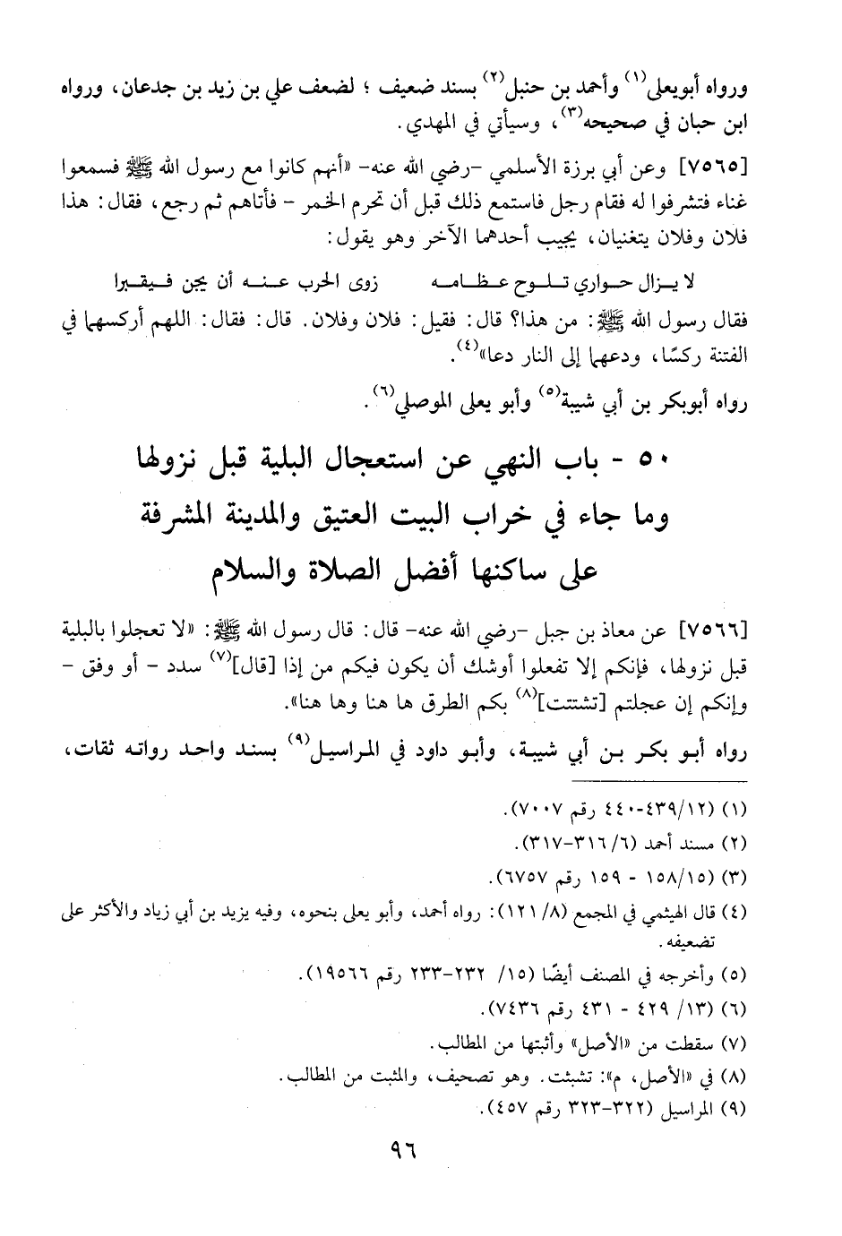 50- بَابُ النَّهْيِ عَنِ اسْتِعْجَالِ الْبَلِيَّةِ قَبْلَ نُزُولِهَا وَمَا جَاءَ فِي خَرَابِ الْبَيْتِ الْعَتِيقِ وَالْمَدِينَةِ الْمُشَرَّفَةِ عَلَى سَاكِنِهَا أَفْضَلُ الصَّلَاةِ وَالسَّلَامِ