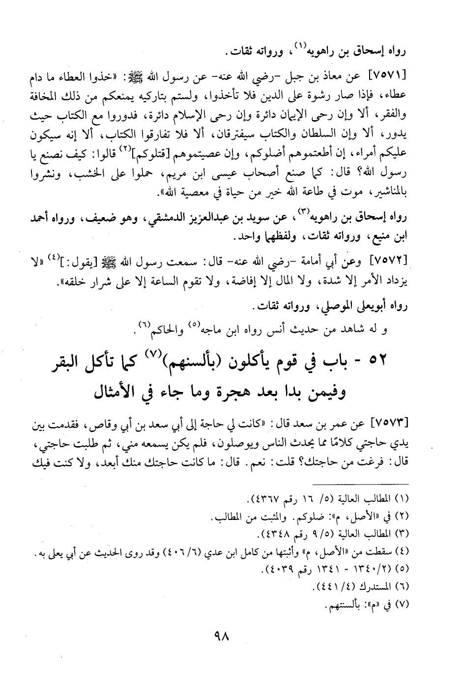 52- باب في قوم يأكلون بألسنهم كما تأكل البقر وفيمن بد بعد هجرة وَمَا جَاءَ فِي الْأَمْثَالِ