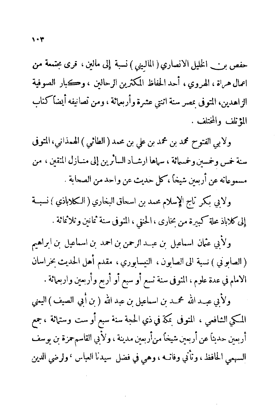 ولأبي عثمان إسماعيل بن عبد الرحمن بن أحمد بن إسماعيل بن إبراهيم الصابوني نسبة إلى الصابون النيسابوري مقدم أهل الحديث بخراسان الإمام في عدة علوم المتوفى: سنة تسع أو سبع أو أربع وأربعين وأربعمائة.