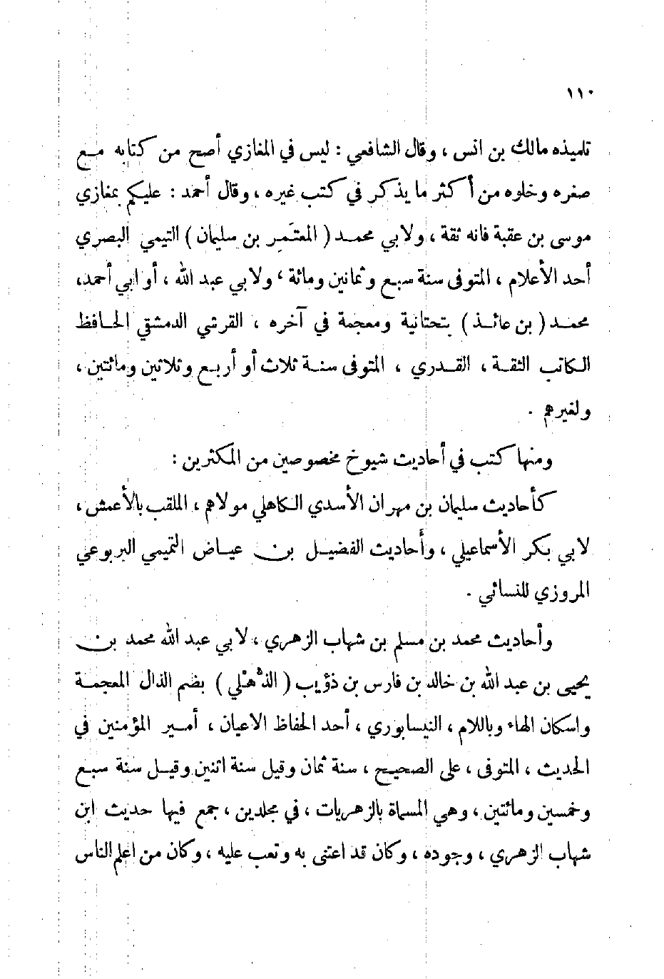 وأحاديث محمد بن مسلم بن شهاب الزهري لأبي عبد الله محمد بن يحيى بن عبد الله بن خالد بن فارس بن ذؤيب الذهلي بضم الذال المعجمة وإسكان الهاء وباللام النيسابوري أحد الحفاظ الأعيان أمير المؤمنين في الحديث المتوفى: على الصحيح سنة ثمان وقيل: سنة اثنين وقيل: سنة سبع وخمسين ومائتين وهي المسماة: بالزهريات في مجلدين جمع فيها حديث ابن شهاب الزهري وجوده وكان قد اعتنى به وتعب عليه وكان من أعلم الناس