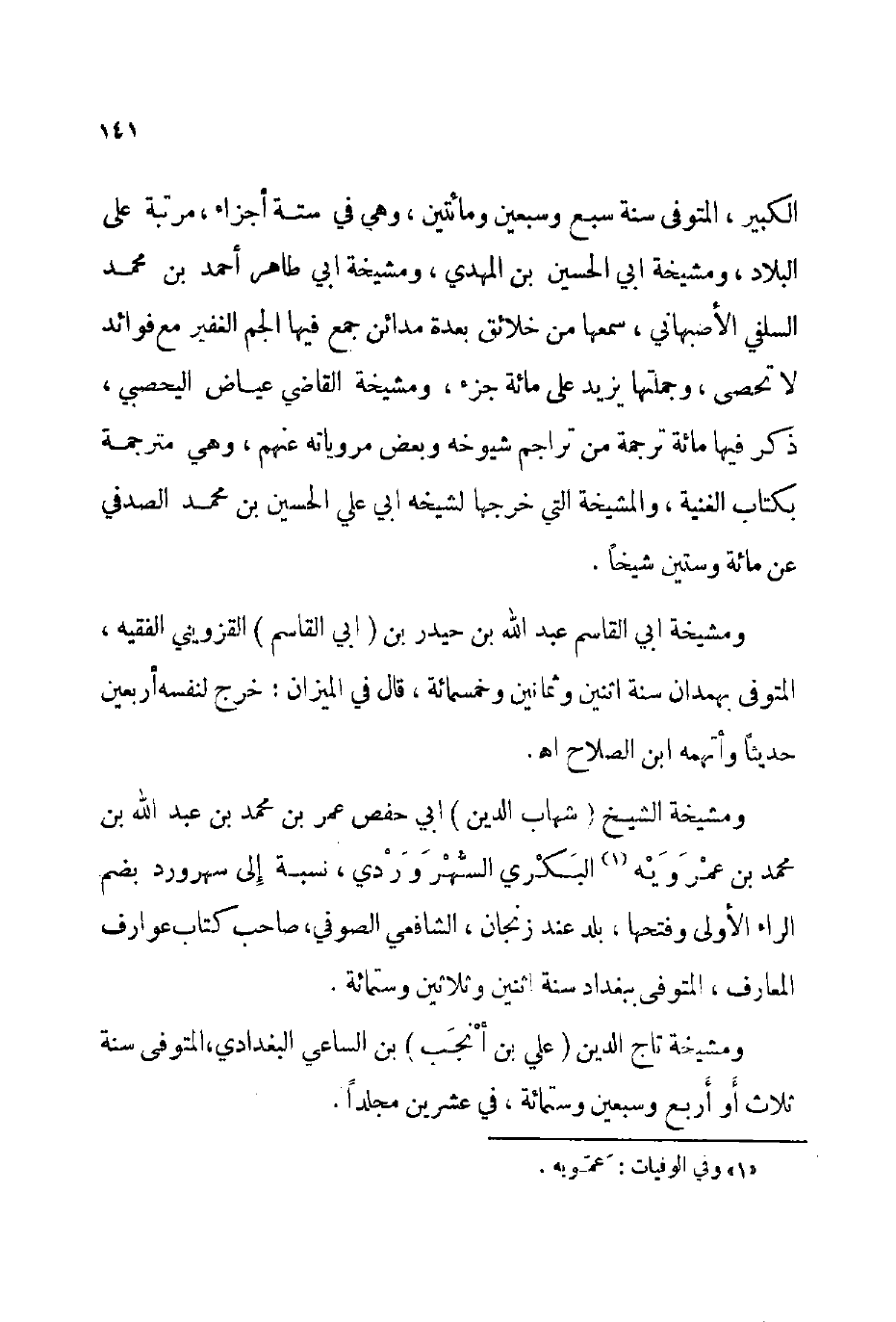 ومشيخة الشيخ شهاب الدين أبي حفص عمر بن محمد بن عبد الله بن محمد بن عمرويه1 البكري السهروردي نسبة إلى سهرود بضم الراء الأولى وفتحها بلد عند زنجان الشافعي الصوفي صاحب كتاب عوارف المعارف المتوفى: ببغداد سنة اثنين وثلاثين وستمائة.