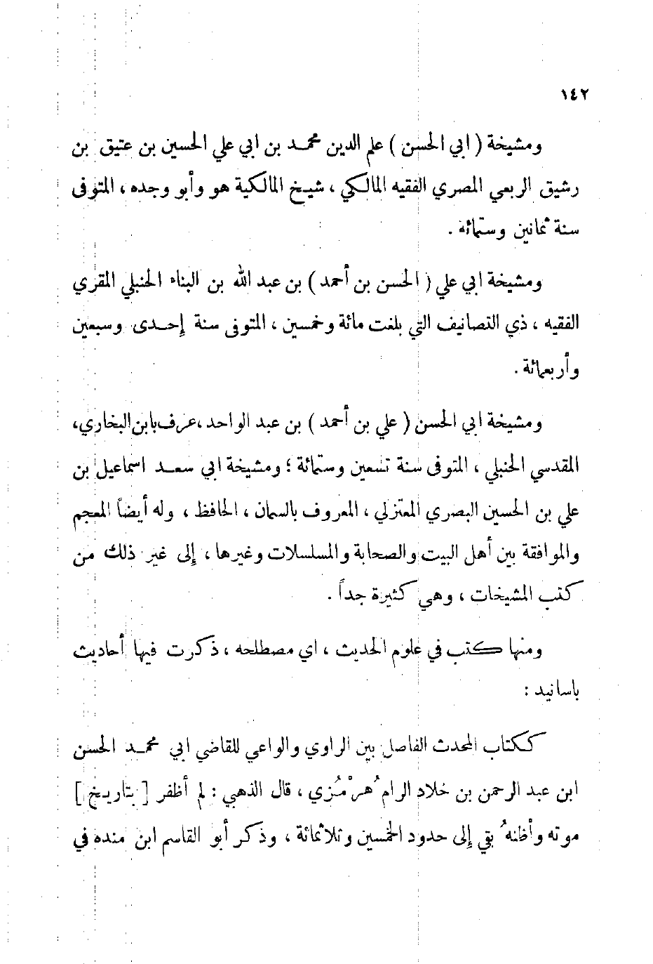 ومشيخة أبي علي الحسن بن أحمد بن عبد الله بن البناء الحنبلي المقري الفقيه ذي التصانيف التي بلغت مائة وخمسين المتوفى: سنة إحدى وسبعين وأربعمائة.