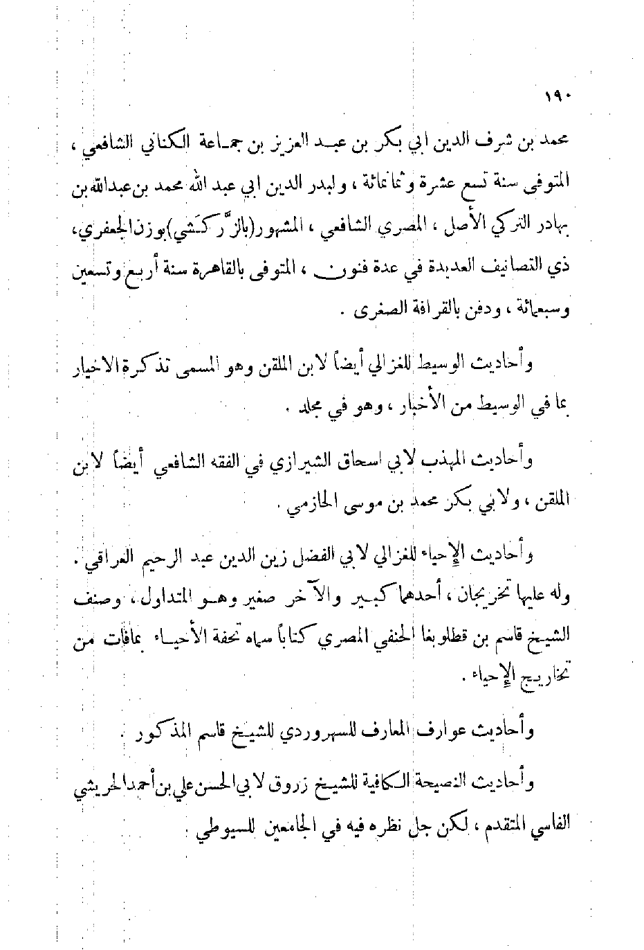 وأحاديث المهذب لأبي إسحاق الشيرازي في الفقه الشافعي أيضا لابن الملقن ولأبي بكر محمد بن موسى الحازمي.