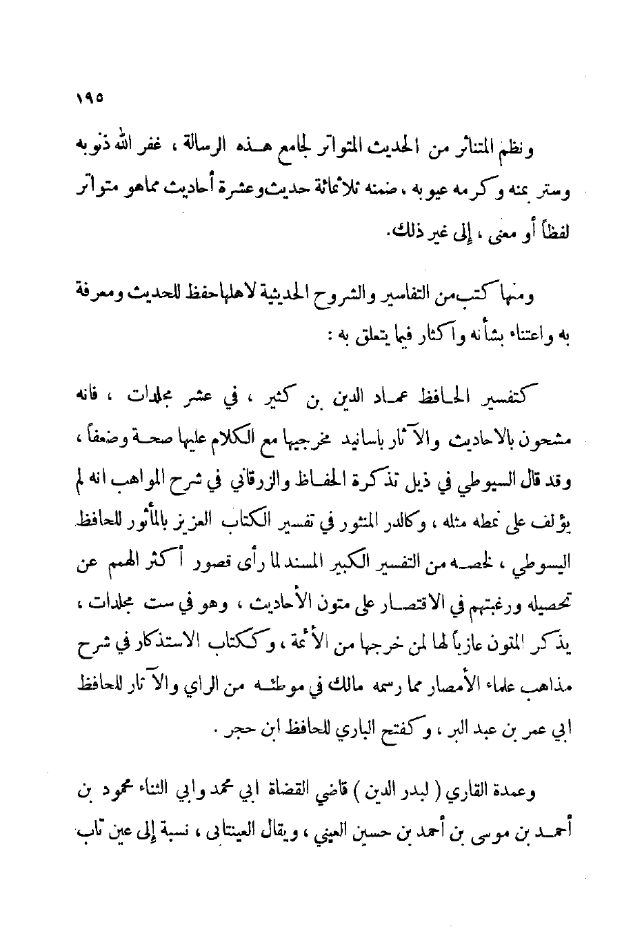 ونظم المتناثر من الحديث المتواتر لجامع هذه الرسالة غفر الله ذنوبه وستر بمنه وكرمه عيوبه ضمنه ثلاثمائة حديث وعشرة أحاديث مما هو متواتر لفظا أو معنى إلى غير ذلك.