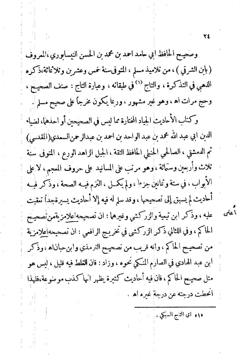 وكتاب الأحاديث الجياد المختارة مما ليس في الصحيحين أو أحدهما لضياء الدين أبي عبد الله محمد بن عبد الواحد أحمد عبد الرحمن السعدي المقدسي ثم الدمشقي الصالحي الحنبلي الحافظ الثقة الجبل الزاهد الورع المتوفى: سنة ثلاث وأربعين وستمائة وهو مرتب على المسانيد على حروف المعجم لا على الأبواب في ستة وثمانين جزءا ولم يكمل التزم فيه الصحة وذكر فيه أحاديث لم يسبق إلى تصحيحها وقد سلم له فيه إلا أحاديث يسيره جدا تعقبت عليه وذكر ابن تيمية والزركشي وغيرهما: أن تصحيحه أعلا مزية من تصحيح الحاكم وفي اللئالي ذكر الزركشي في تخريج الرافعي: أن تصحيحه أعلا مزية من تصحيح الحاكم وأنه قريب من تصحيح الترمذي وابن حبان اهـ، وذكر ابن عبد الهادي في الصارم المنكي نحوه وزاد: فإن الغلط فيه قليل ليس هو مثل صحيح الحاكم فإن فيه أحاديث كثيرة يظهر أنها كذب موضوعة فلهذا انحطت درجته عن درجة غيره اهـ.
