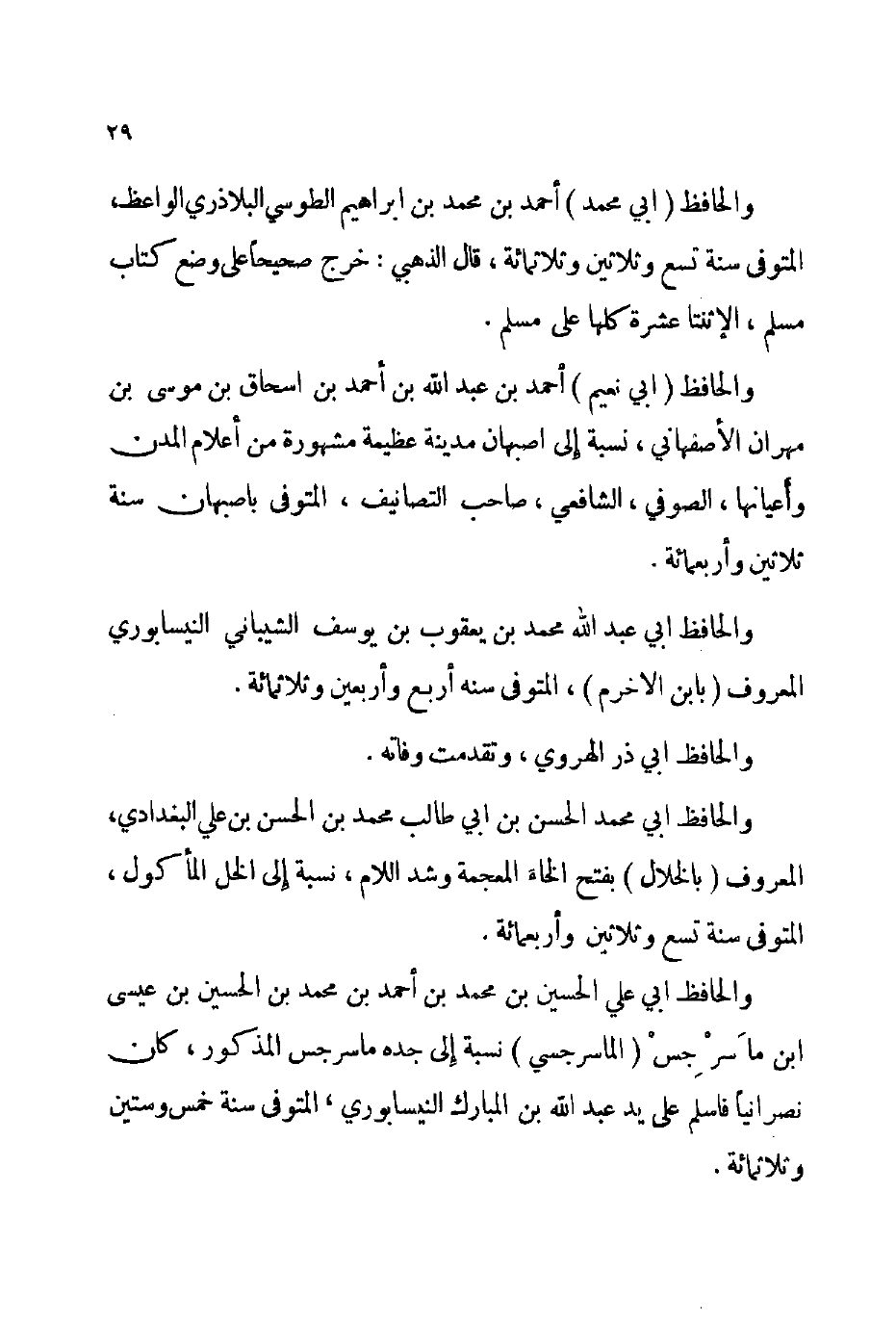 والحافظ أبي نعيم أحمد بن عبد الله بن أحمد بن إسحاق بن موسى بن مهران الأصفهاني نسبة إلى أصبهان مدينة عظيمة مشهورة من أعلام المدن وأعيانها الصوفي الشافعي صاحب التصانيف المتوفى: بأصبهان سنة ثلاثين وأربعمائة.