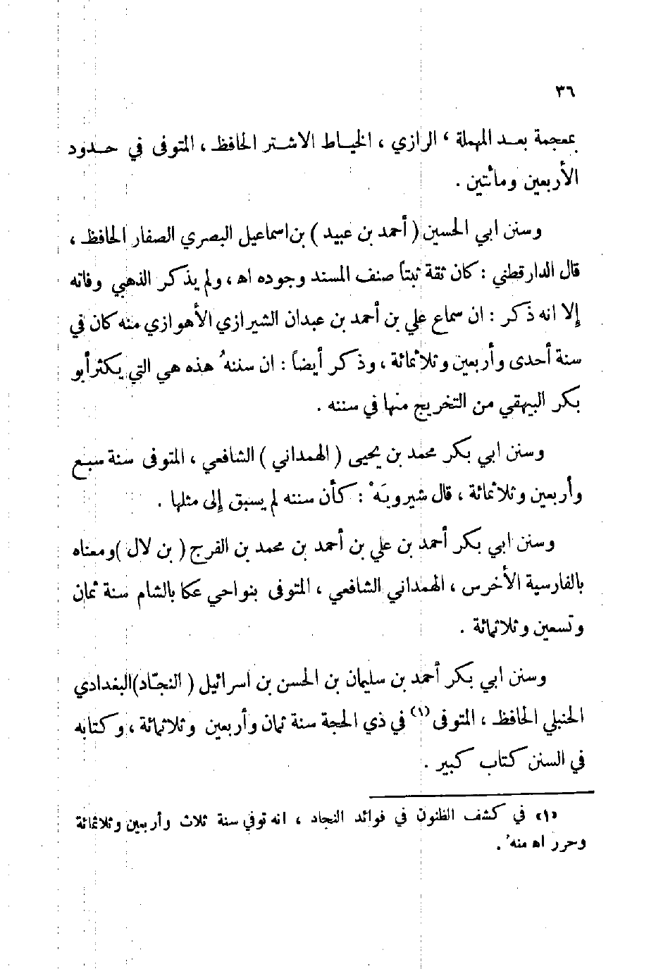وسنن أبي بكر أحمد بن سليمان بن الحسن بن إسرائيل النجاد البغدادي الحنبلي الحافظ المتوفى1 في ذي الحجة سنة ثمان وأربعين وثلاثمائة وكتابه في السنن كتاب كبير.