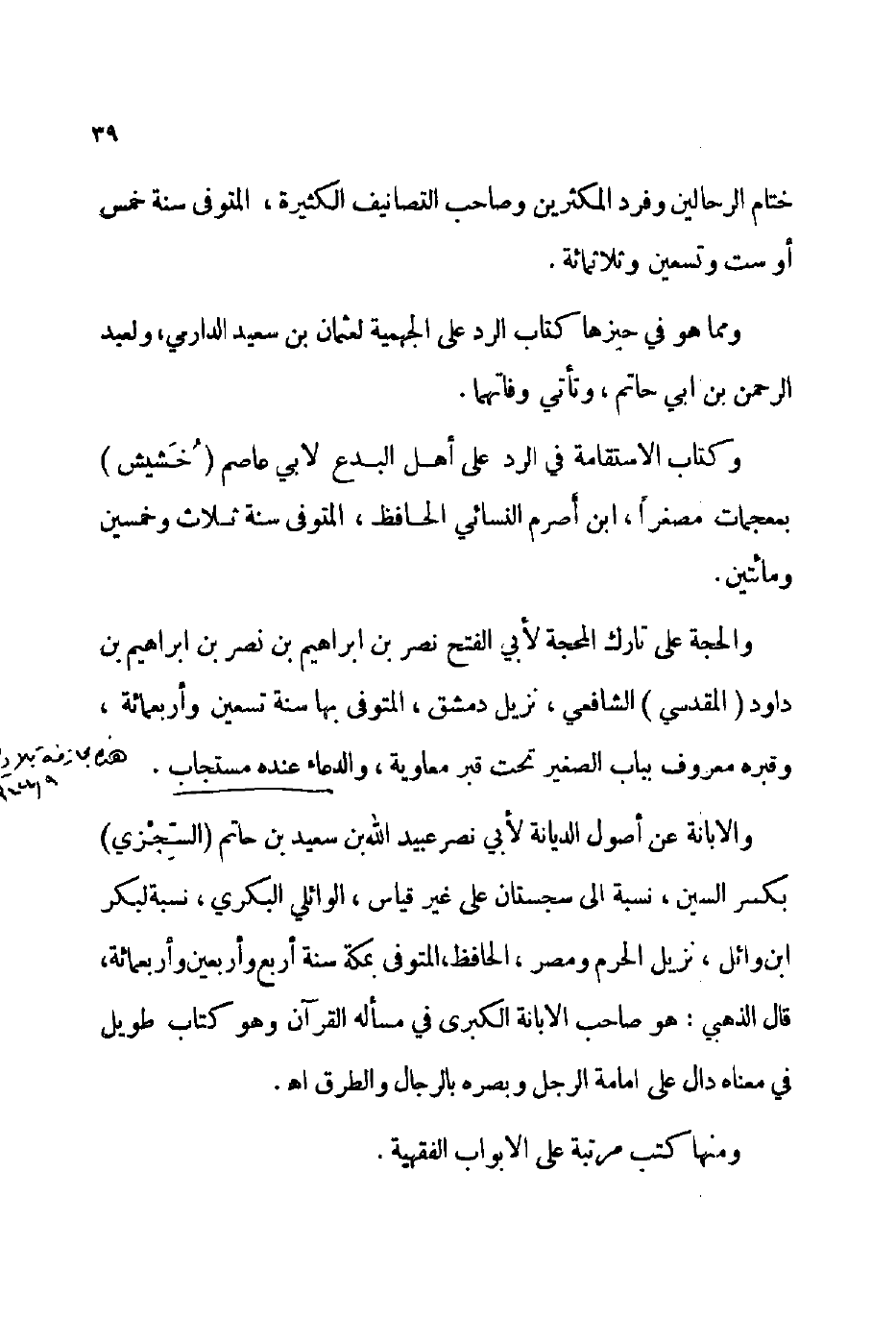 ختام الرحالين وفرد المكثرين وصاحب التصانيف الكثيرة المتوفى: سنة خمس أو ست وتسعين وثلاثمائة