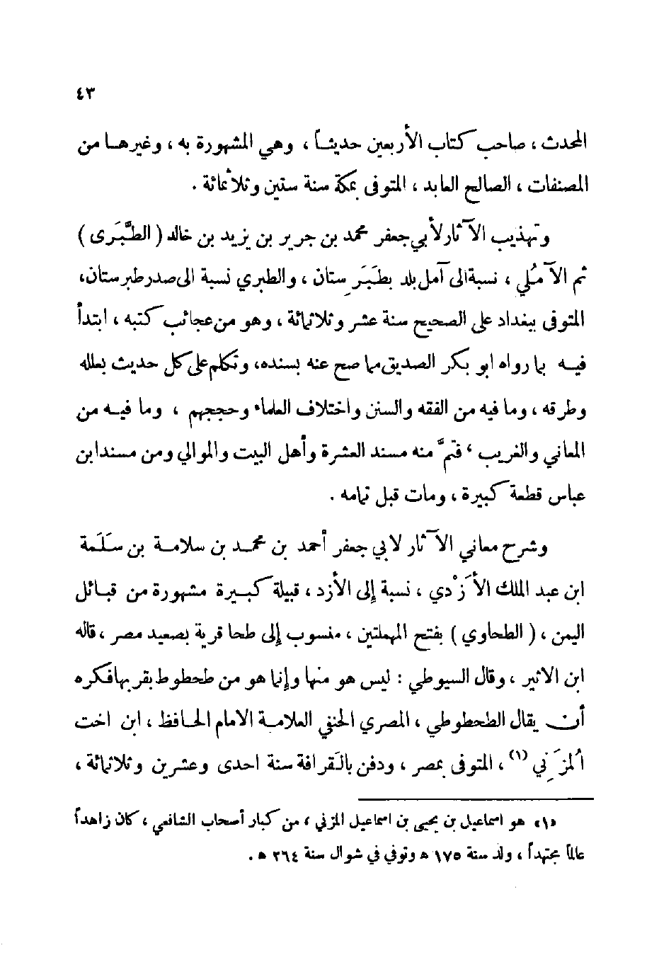1 هو اسماعيل بن يحي بن اسماعيل المزني، من كبار أصحاب الشافعي، كان زاهدا عالما مجتهدا ولد سن 175هـ وتوفي في شوال سنة 264هـ.