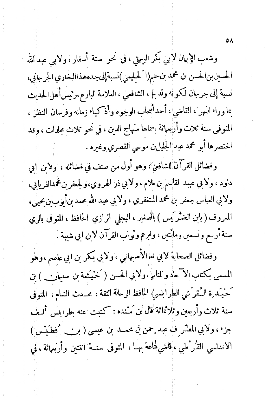 وشعب الإيمان لأبي بكر البيهقي في نحو ستة أسفار ولأبي عبد الله الحسين بن الحسن بن محمد بن حليم الحليمي نسبة إلى جده هذا البخاري الجرجاني نسبة إلى جرجان لكونه ولد بها الشافعي العلامة البارع رئيس أهل الحديث بما وراء النهر القاضي أحد أصحاب الوجوه وأذكياء زمانه وفرسان النظر المتوفى: سنة ثلاث وأربعمائة سماها منهاج الدين في نحو ثلاث مجلدات وقد اختصرها أبو محمد عبد الجليل بن موسي القصري وغيره.