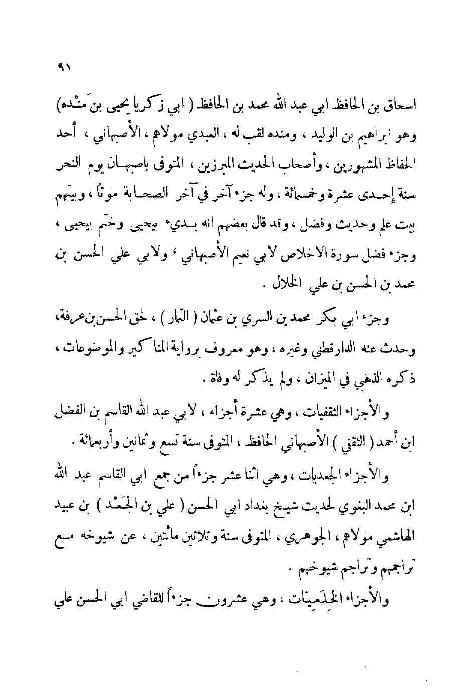 إسحاق بن الحافظ أبي عبد الله محمد بن الحافظ أبي زكريا يحيى بن منده وهو إبراهيم بن الوليد ومنده لقب له العبدي مولاهم الأصبهاني أحد الحفاظ المشهورين وأصحاب الحديث المبرزين المتوفى: بأصبهان يوم النحر سنة إحدى عشرة وخمسمائة وله جزء آخر في آخر الصحابة موتا وبيتهم بيت علم وحديث وفضل وقد قال بعضهم: أنه بديء بيحيى وختم بيحيى وجزء فضل سورة الإخلاص لأبي نعيم الأصبهاني ولأبي علي الحسن بن محمد بن الحسن بن علي الخلال.