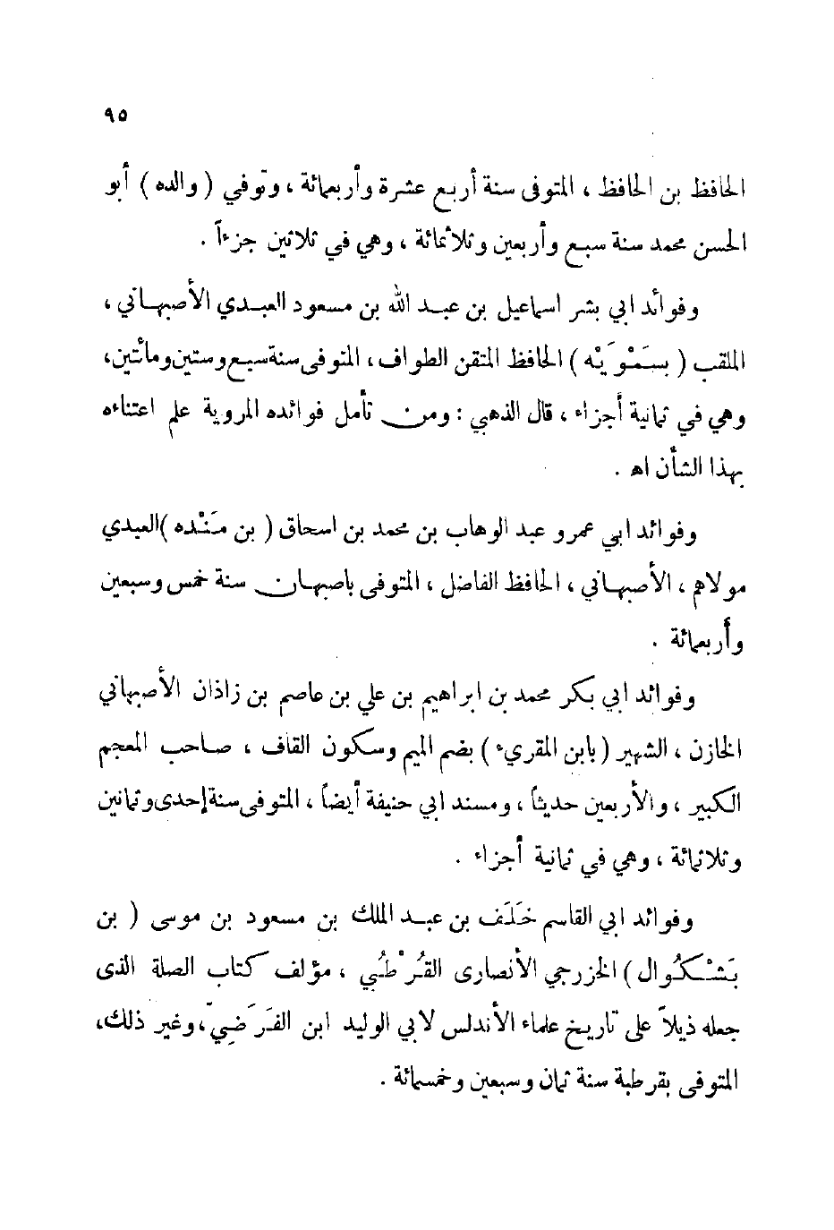 وفوائد أبي القاسم خلف بن عبد الملك بن مسعود بن موسى بن بشكوال الخزرجي الأنصاري القرطبي مؤلف كتاب الصلة الذي جعله ذيلا على تاريخ علماء الأندلس لأبي الوليد بن الفرضي وغير ذلك المتوفى: بقرطبة سنة ثمان وسبعين وخمسمائة.