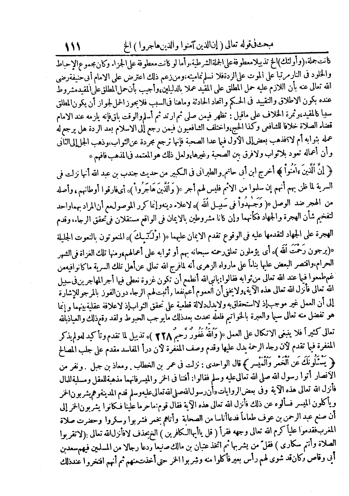 إن الذين آمنوا أخرج إبن أبي حاتم والطبراني في الكبير من حديث جندب بن عبدالله أنها نزلت في السرية لما ظن بهم أنهم إن سلموا من الإثم فليس لهم أجر