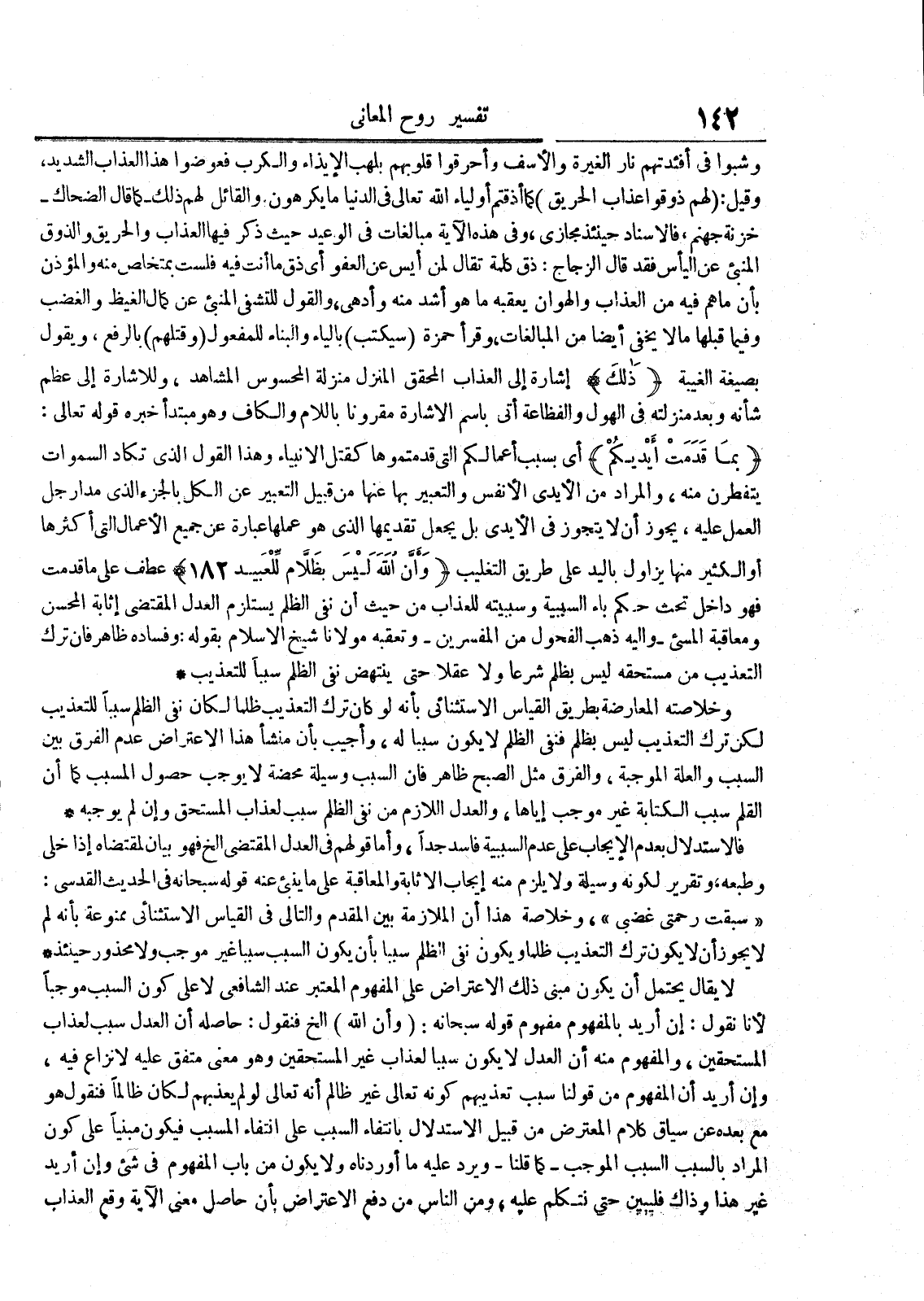 لا يقال يحتمل أن يكون مبني ذلك الإعتراض على المفهوم المعتبر عند الشافعي لا على كون السبب موجبا لأنا نقول : إن أريد بالمفهوم مفهوم قوله سبحانه : وأن الله إلخ فنقول : حاصله أن العدل سبب لعذاب المستحقين والمفهوم منه أن العدل لا يكون سببا لعذاب غير المستحقين وهو معنى متفق عليه لا نزاع فيه وإن أريد أن المفهوم من قولنا سبب تعذيبهم كونه تعالى غير ظالم أنه تعالى لو لم يعذبهم لكان ظالما فنقول هو مع بعده عن سياق كلام المعترض من قبيل الإستدلال بإنتفاء السبب على إنتفاء المسبب فيكون مبنيا على كون المراد بالسبب السبب الموجب كما قلناويرد عليه ما أوردناه ولا يكون من باب المفهوم في شيء وإن أريد غير هذا وذاك فليبين حتى نتكلم عليه ومن الناس من دفع الإعتراض بأن حاصل معنى الآية وقع العذاب
