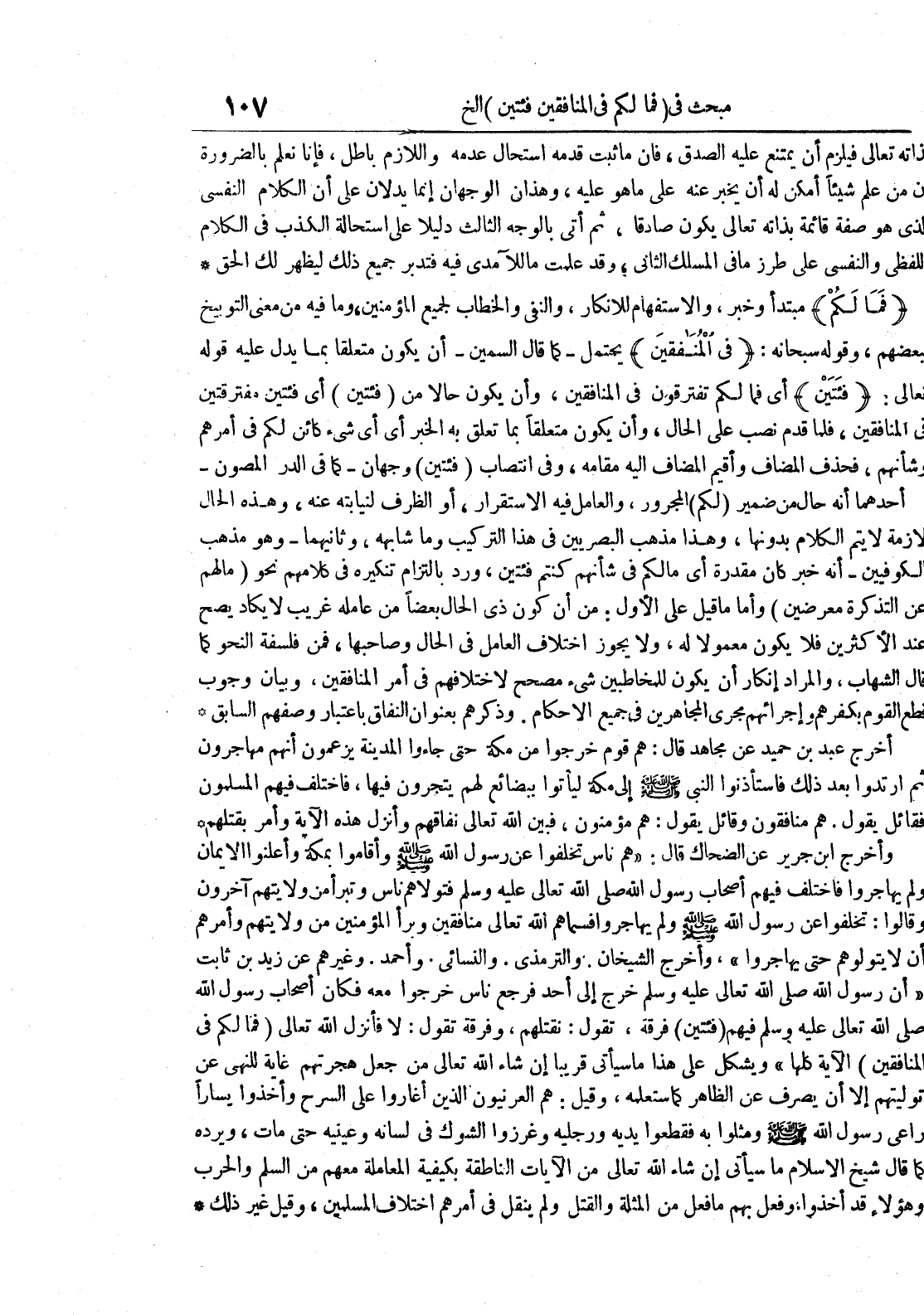 وأخرج بن جرير عن الضحاك قال : هم ناس تخلفوا عن رسول الله صلى الله عليه و سلم وأقاموا بمكة وأعلنوا الايمان ولم يهاجروا فاختلف فيهم أصحاب رسول الله صلى الله عليه و سلم فتولاهم ناس وتبرأ من ولايتهم آخرون وقالوا : تخلفوا عن رسول الله صلى الله عليه و سلم ولم يهاجروا فسماهم الله تعالى منافقين وبرأ المؤمنين من ولايتهم وأمرهم أن لايتولهم حتى يهاجروا وأخرج الشيخان والترمذى والنسائى وأحمد وغيرهم عن زيد بن ثابت أن رسول الله صلى الله عليه و سلم خرج الى أحد فرجع ناس خرجوا معه فكان أصحاب رسول الله صلى الله عليه و سلم فيهم فئتين فرقة تقول : نقتلهم وفرقة تقول : لا فأنزل الله تعالى فما لكم فى المنافقين الآية كلها ويشكل على هذا ما سيأتى قريبا إن شاء الله تعالى من جعل هجرتهم غاية للنهى عن توليتهم الا أن يصرف عن الظاهر كما ستعلمه وقيل : هم العرنيون الذين أغاروا على السرح وأخذوا يسارا راعى رسول الله صلى الله عليه و سلم ومثلوا به فقطعوا يديه ورجليه وغرزوا الشوك فى لسانه وعينيه حتى مات ويرده كما قال شيخ الاسلام ما سيأتى ان شاء الله تعالى من الآيات الناطقة بكيفية المعاملة معهم فى السلم والحرب وهؤلاء قد أخذوا وفعل بهم ما فعل من المثلة والقتل ولم ينقل أمرهم اختلاف المسلمين وقيل غير ذلك