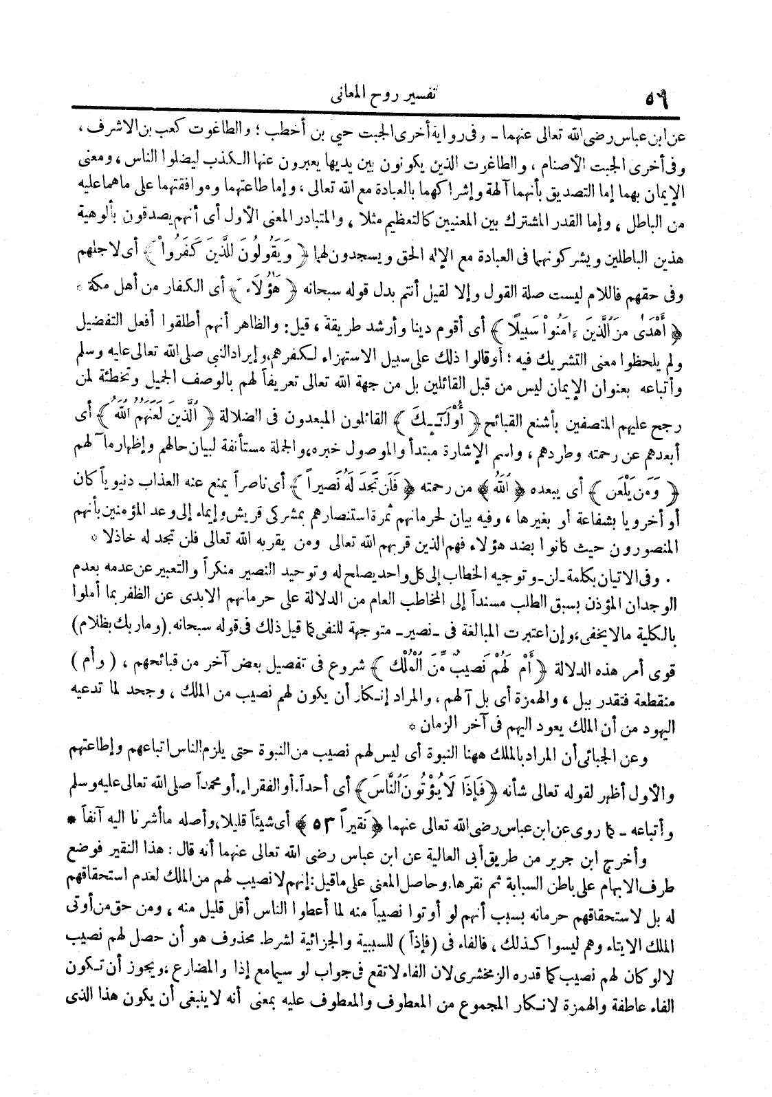 أهدى من الذين ءامنوا سبيلا أي أقوم دينا وأرشد طريقة قيل : والظاهر أنهم أطلقوا أفعل التفضيل ولم يلحظوا معنى التشريك فيه أو قالوا ذلك على سبيل الاستهزاء لكفرهم وإيراد النبي صلى الله تعالى عليه وسلم وأتباعه بعنوان الإيمان ليس من قبل القائلين بل من جهة الله تعالى تعريفا لهم بالوصف الجميل وتخطئة لمن رجح عليهم المتصفين بأشنع القبائح أولئك القائلون المبعدون في الضلالة الذين لعنهم الله أي أبعدهم عن رحمته وطردهم واسم الإشارة مبتدأ والموصول خبره والجملة مستأنفة لبيان حالهم وإظهار مآلهم ومن يلعن أي يبعده الله من رحمته فلن تجد له نصيرا أي ناصرا يمنع عنه العذاب دنيويا كان أو أخرويا بشفاعة أو بغيرها وفيه بيان لحرمانهم ثمرة استنصارهم بمشركي مكة وإيماء إلى وعد المؤمنين بأنهم المنصورون حيث كانوا بضد هؤلاء فهم الذين قربهم الله تعالى ومن يقربه الله تعالى فلن تجد له خاذلا