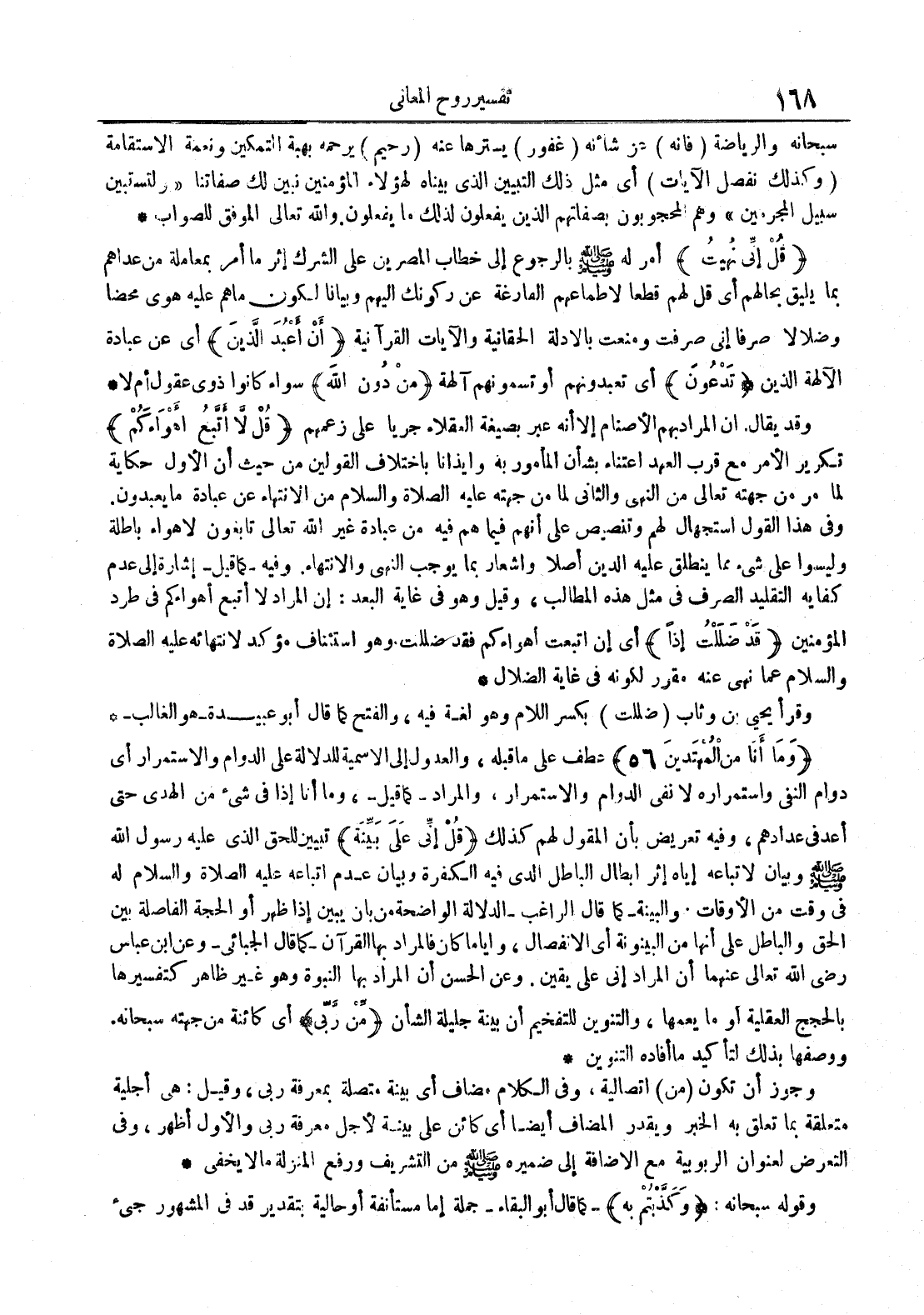 وقد يقال المراد بهم الأصنام إلا أنه عبد بصيغة العقلاء جريا على زعمهم قل لا أتبع أهواءكم تكرير الأمر مع قرب العهد اعتناء بشأن المأمور به وايذانا باختلاف القولين من حيث أن الأول حكاية لما مر من جهته تعالى من النهي والثاني لما من جهته عليه الصلاة و السلام من الانتهاء عن عبادة ما يعبدون وفي هذا القول استجهال لهم وتنصيص على أنهم فيما هم فيه من عبادة غير الله تعالى تابعون لأهواء باطلة وليسوا على شيء مما ينطلق عليه الىين أصلا واشعار بما يوجب النهي والانتهاء وفيه كما قيل إشارة إلى عدم كفاية التقليد الصرف في مثل هذه المطالب وقيل وهو في غاية البعد : إن المراد لا أتبع أهواءكم في طرد المؤمنين قد ضللت إذا أي إن اتبعت أهواءكم فقد ضللت وهو استئناف مؤكد لانتهائه عليه الصلاة و السلام عما نهي عنه مقرر لكونه غاية الضلال
