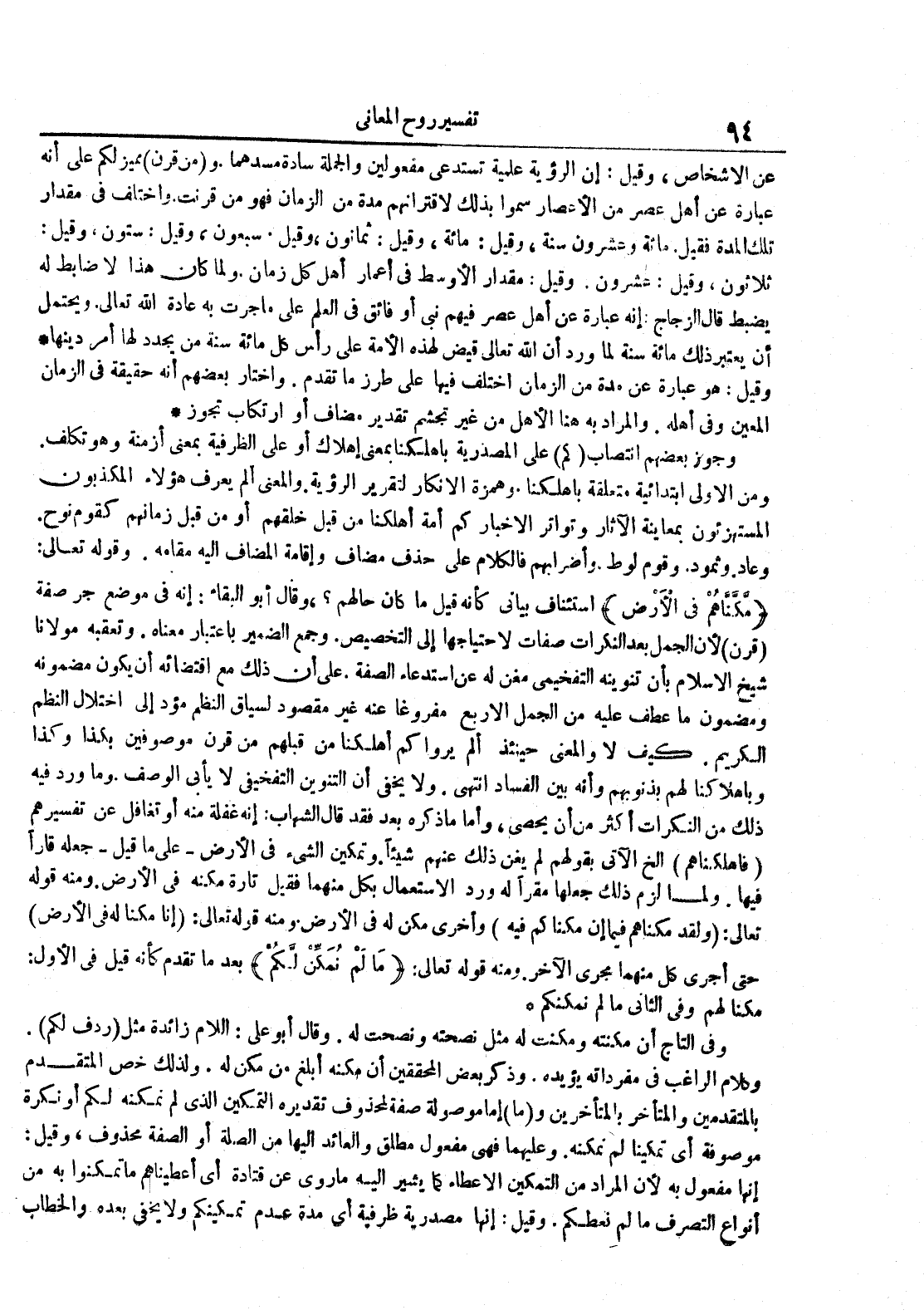 عن الأشخاص وقيل : إن الرؤية علمية تستدعي مفعولين والجملة سادة مسدها و من قرن مميز لكم على أنه عبارة عن أهل عصر من الأعصار سموا بذلك لاقترانهم مدة من الزمان فهو من قرنت واختلف في مقدار تلك المدة فقيل مائلآ وعشرون سنة وقيل : مائة وقيل : ثمانون وقيل سبعون وقيل : سنون وقيل : ثلاثون وثيل : عشون وقيل : مقدار الأوسط في أعمار أهل كل زمان ولما كان هذا لا ضابط له يضبط قال الزجاج : إنه عبارة عن أهل عصر فيهم نبي أو فائق في العلم على ما جرت به عادة الله تعالى ويحتمل أن يعتبر مائة سنة لما ورد أن الله تعالى قيض لهذه الأمة على رأس كل مائة سنة من يجدد لها أمر دينها