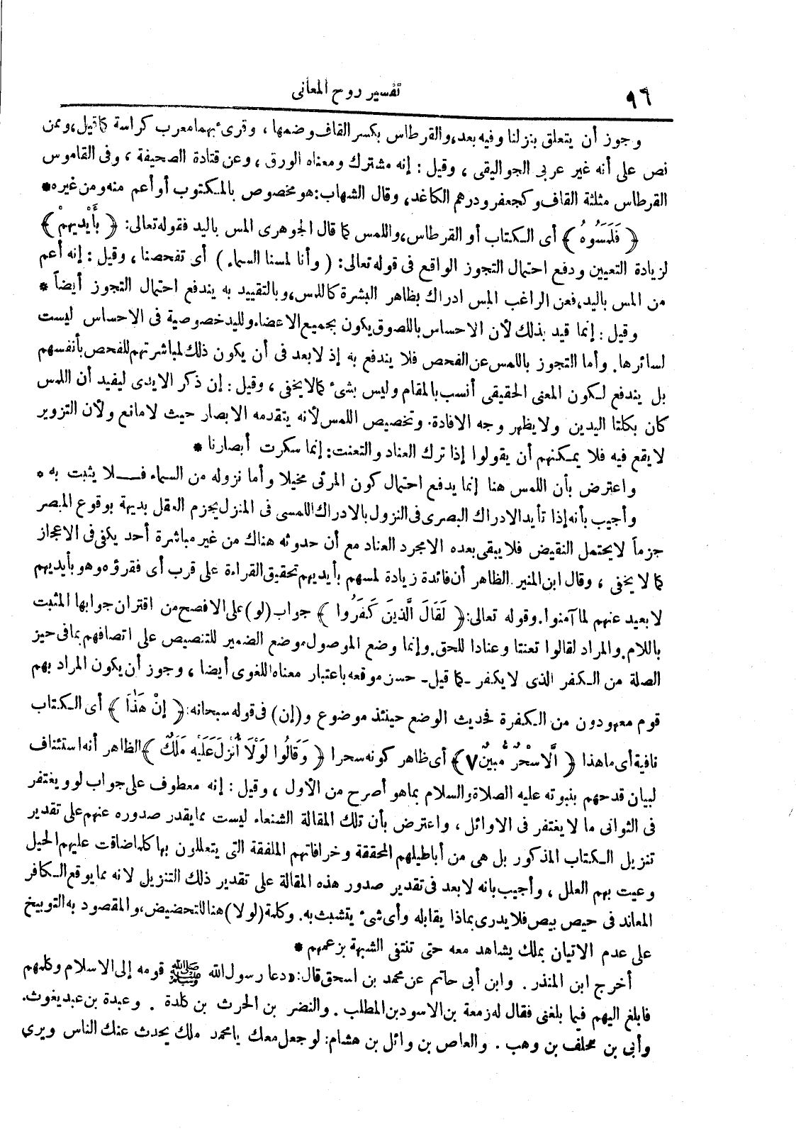 0 - فلمسوه أي الكتاب أو القرطاس واللمس كما قال الجوهري المس باليد فقوله تعالى : بأيديهم لزيادة التعيين ودفع احتمال التجوز الواقع في قوله تعالى : وأنا لمسنا السماء أي تفحصنا وقيل : إنه أعم من المس باليد فعن الراغب المس ادراك بظاهر البشرة كاللمس وبالتقييد به يندفع احتمال التجوز أيضا