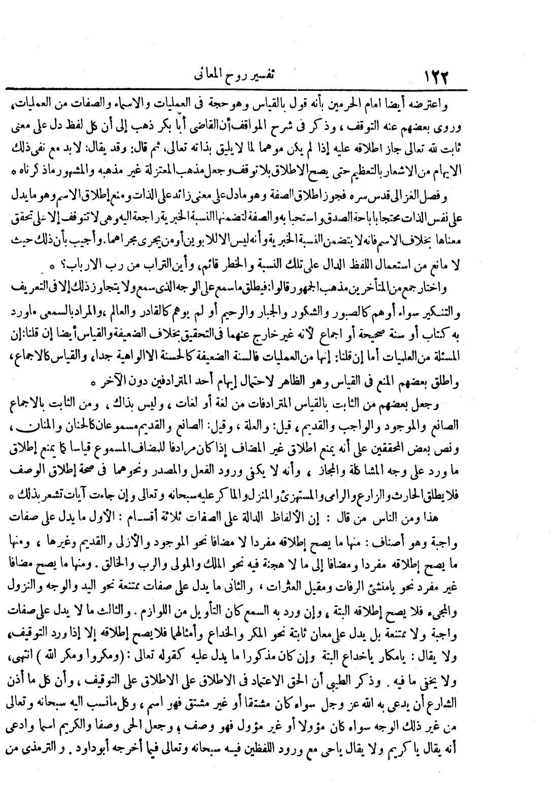 واعترضه أيضا إمام الحرمين بأنه قول بالقياس وهو حجة في العمليات والأسماء والصفات من العمليات وروى بعضهم عنه التوقف وذكر في شرح المواقف أن القاضي أبابكر ذهب إلى أن كل لفظ دل على معنى ثابت لله تعالى جاز إطلاقه عليه إذا لم يكن موهما لما لا يليق بذاته تعالى ثم قال : وقد يقال : لابد مع نفي ذلك الإبهام من الإشعار بالتعظيم حتى يصح الإطلاق بلا توقف وجعل مذهب المعتزلة غير مذهبه والمشهور ما ذكرناه