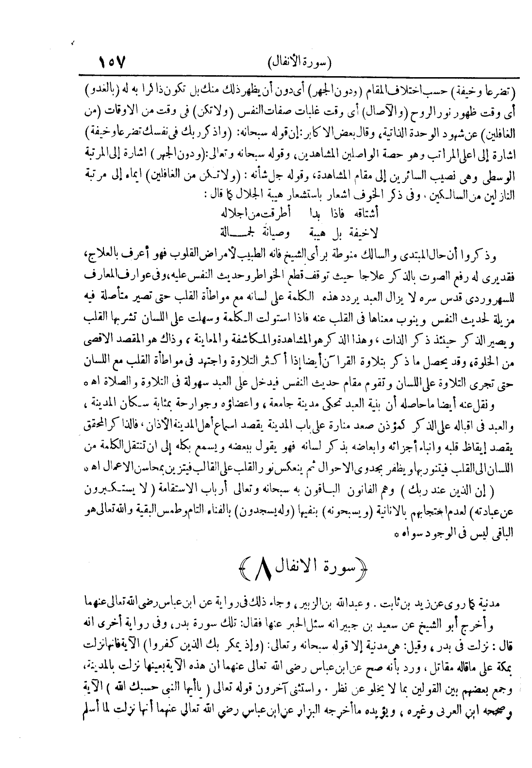 8 - مدنية كما روي عن زيد بن ثابت وعبدالله بن الزبير وجاء ذلك في رواية عن ابن عباس رضي الله تعالى عنهما وأخرج أبو الشيخ عن سعيد بن جبير أنه سئل الحبر عنها فقال : تلك سورة بدر وفي رواية أخرى أنه قال : نزلت في بدر وقيل : هي مدنية إلا قوله سبحانه وتعالى : وإذ يمكر بك الذين كفروا الآية فإنها نزلت بمكة على ما قاله مقاتل ورد بأنه صح عن ابن عباس رضي الله تعالى عنهما أن هذه الآية بعينها نزلت بالمدينة وجمع بعضهم بين القولين بما لا يخلو عن نظر واستثنى آخرون قوله تعالى يا أيها النبي حسبك الله الآية وصححه ابن العربي وغيره ويؤيده ما أخرجه البزار عن ابن عباس رضي الله تعالى عنهما أنها نزلت لما أسلم