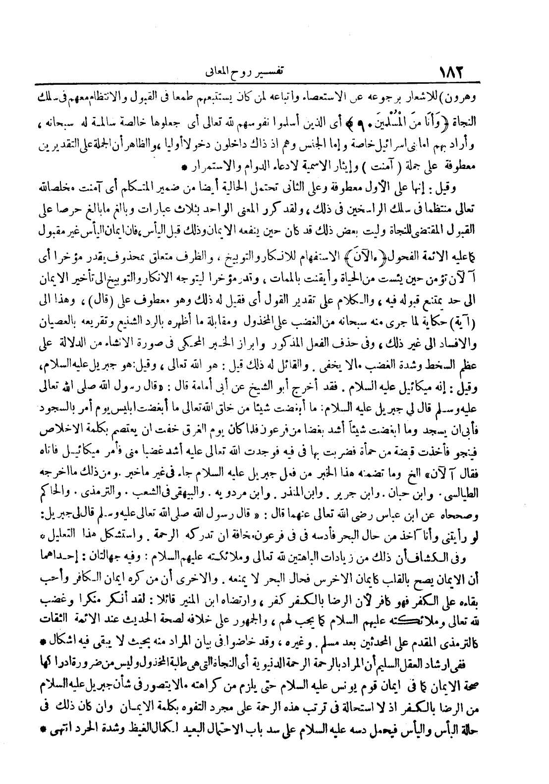 وهرون للإشعار برجوعه عن الإستعصاء وإتباعه لمن كان يستتبعهم طمعا في القبول والإنتظام معهم في سلك النجاة وأنا من المسلمين 90 أي الذين أسلموا نفوسهم لله تعالى أي جعلوها خالصة سالمة له سبحانه وأراد بهم إما بني إسرائيل خاصة وإما الجنس وهم إذ ذاك داخلون دخولاأوليا والظاهر أن الجملة على التقديرين معطوفة على جملة آمنت وإيثار الإسمية لإدعاء الدوام والإستمرار
