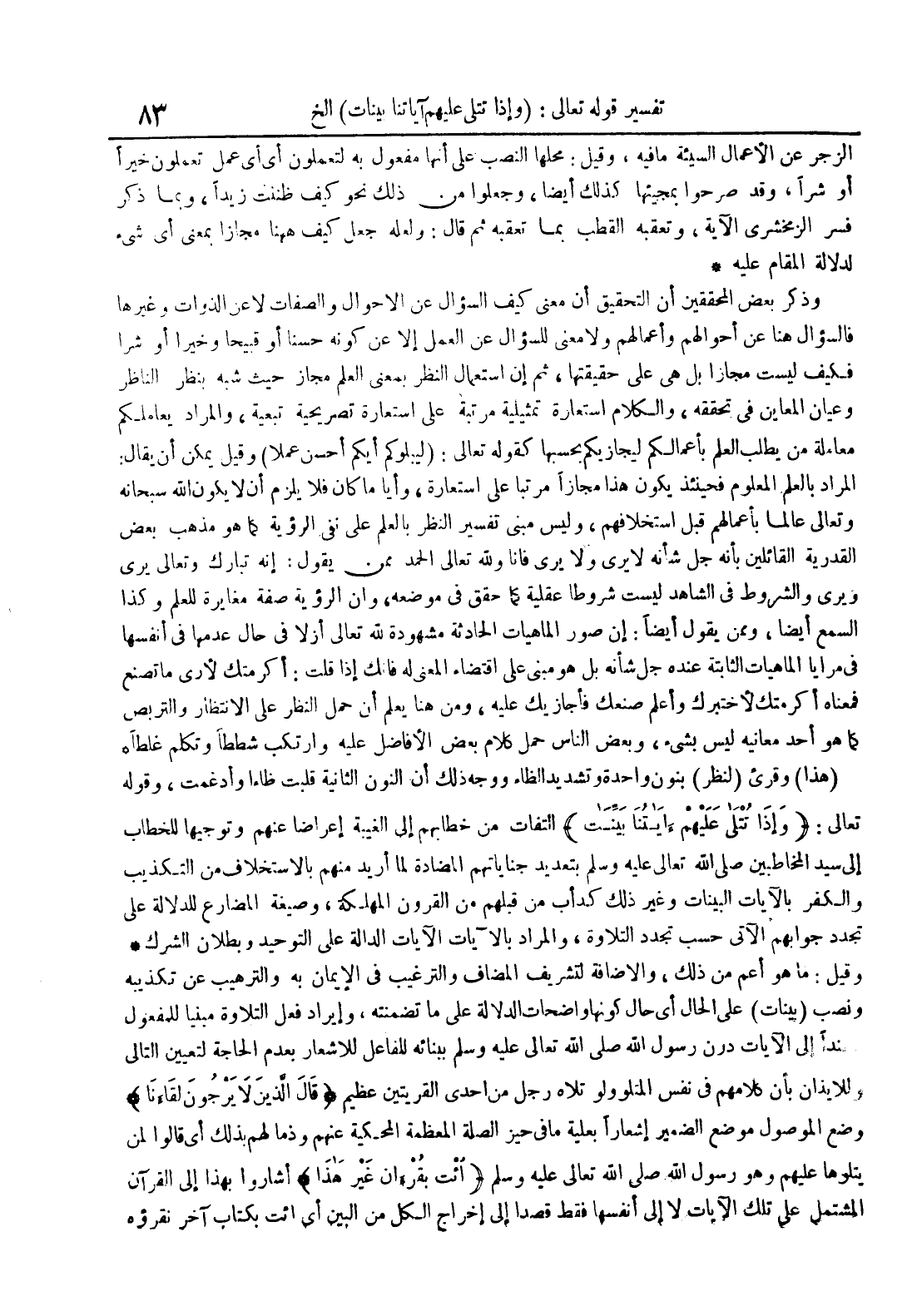 الزجر عن الأعمال السيئة ما فيه وقيل : محلها النصب على أنها مفعول به لتعلمون أي أي عمل تعملون خيرا أو شرا وقد صرحوا بمجيئها كذلك أيضا وجعلوا من ذلك نحو كيف ظننت زيدا وبما ذكر فسر الزمخشري الآية وتعقبه القطب بما تعقبه ثم قال : ولعله جعل كيف ههنا مجازا بمعنى أي شيء لدلالة المقام عليه