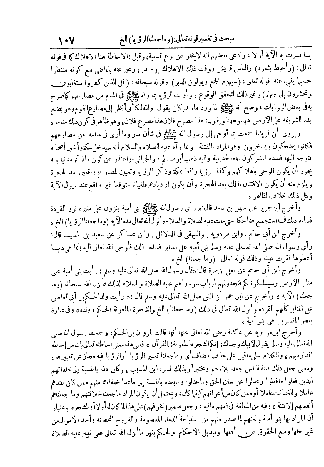 وأخرج ابن جرير عن سهل بن سعد قال : رأى رسول الله بني أمية ينزون على منبره نزو القردة فساءه ذلك فما استجمع ضاحكا حتى مات عليه الصلاة و السلام وأنزل الله تعالى هذه الآية وما جعلنا الرؤيا الخ