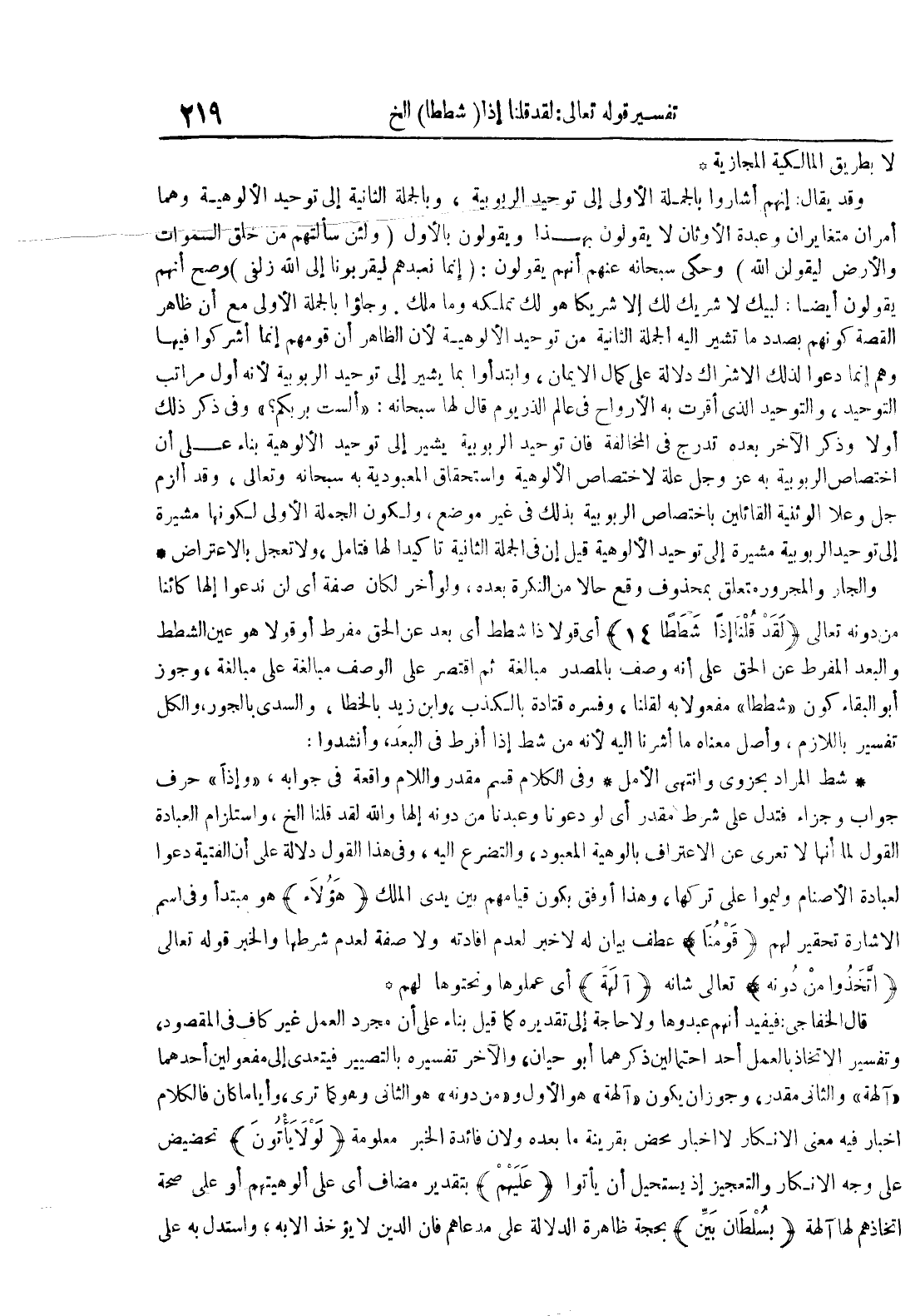 والجار والمجرور متعلق بحدوث وقع حالا من النكرة بعده ولو أخر لكان صفة أي لن ندعو إلها كائنال من دونه تعالى لقد قلنا إذا شطاطا 41 أي قولا ذا شططا أي بعد عن الحق مفرد أو قولا هو عين الشطط والبعد المفرط عن الحق على أنه وصف بالمصدر مبالغة ثم اقتصر على الوصف مبالغة على مبالغة وجوز أبو البقاء كون شططا مفعولا به لقلنا وفسره قتادة بالكذب وابن زيد بالخطأ والسدي بالجور والكل تفسير باللازم وأصل معناه ما أشرنا إليه لأنه من شط إذا أفرط في البعد وأنشدوا :