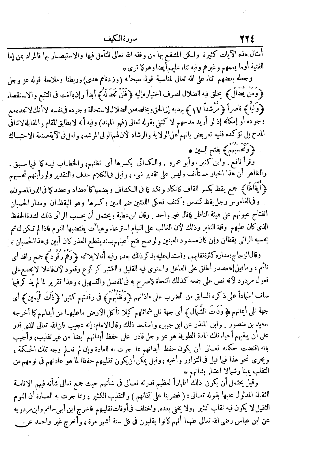 وجعله بعضهم ثناء على الله تعالى لمناسبة قوله سبحانه وزدناهم هدى وربطنا وملاءمة قوله عز و جل ومن يضلل يخلق فيه الضلال لصرف اختياره إليه فلن تجد له أبدا وإن بالغت في التتبع والاستقصاء وليا ناصرا مرشدا 71 يهديه إلى الحق ويخلصه من الضلال لاستحالة وجوده في نفسه لا أنك لا تجده مع وجوده أو إمكانه إذ لو أريد مدحهم لاكتفى بقوله تعالى فهو المهتد وفيه أنه لا يطابق المقام والمقابلة لا تنافي المدح بل تؤكده ففيه تعريض بأنهم أهل الولاية والرشاد لأن لهم الولي المرشد ولعل في الآية صنعة الاحتباك وتحسبهم بفتح السين